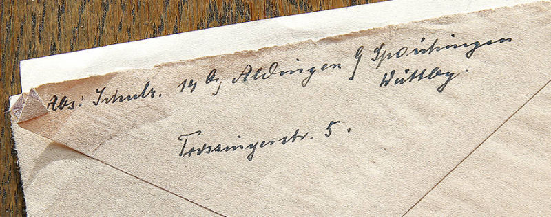 Die Anschrift von Fritz während seines Aufenthaltes in Aldingen