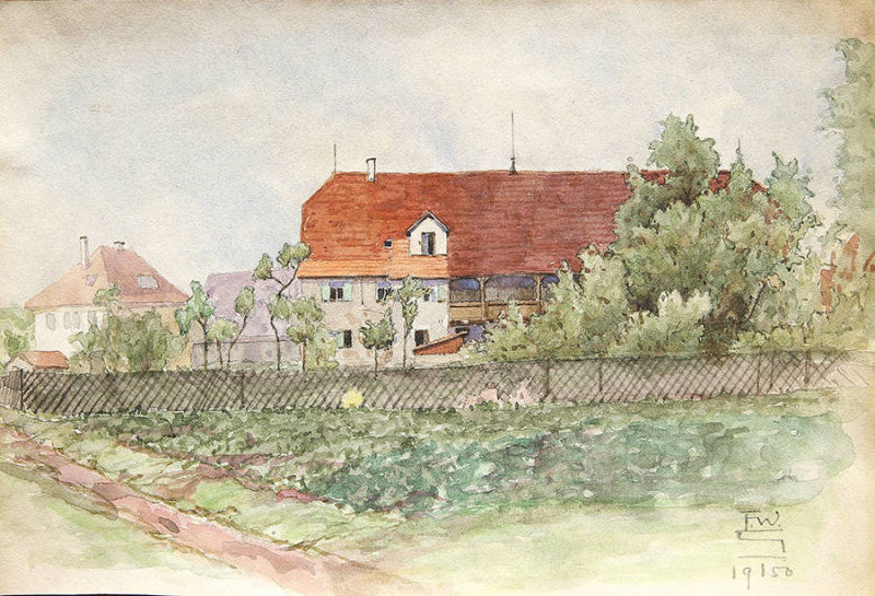 Häuser in Aldingen, Aquarellmalerei, entstanden 1950