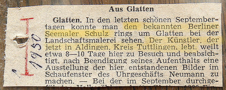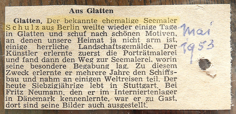 Zeitungsausschnitt über den Aufenthalt von Fritz in Glatten im Mai 1953