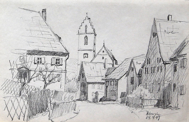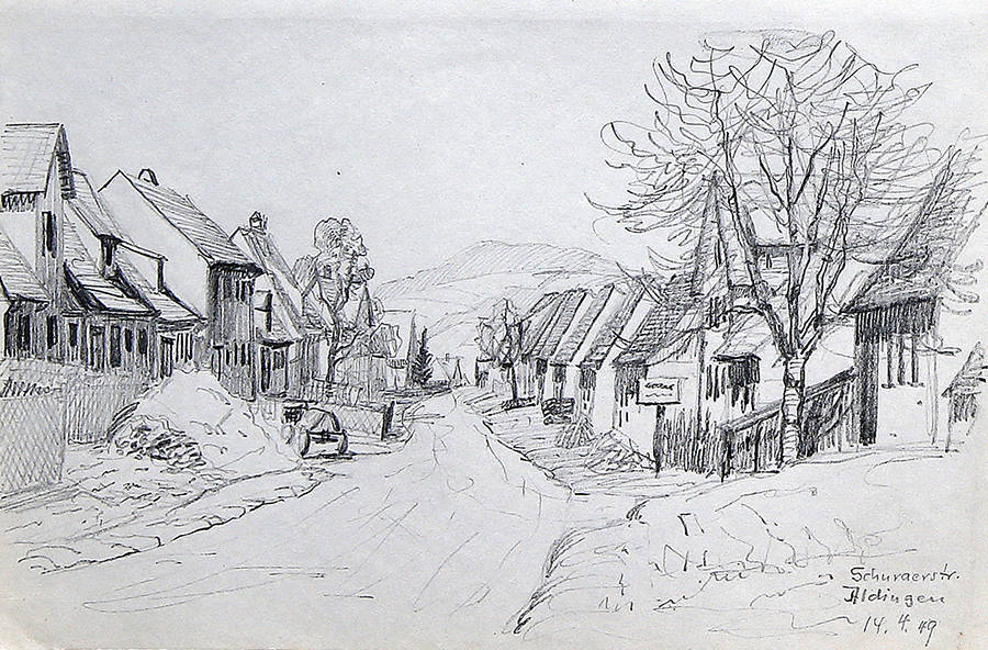 Bleistiftzeichnung von Aldingen, Schuraerstrasse, 14.04.1949