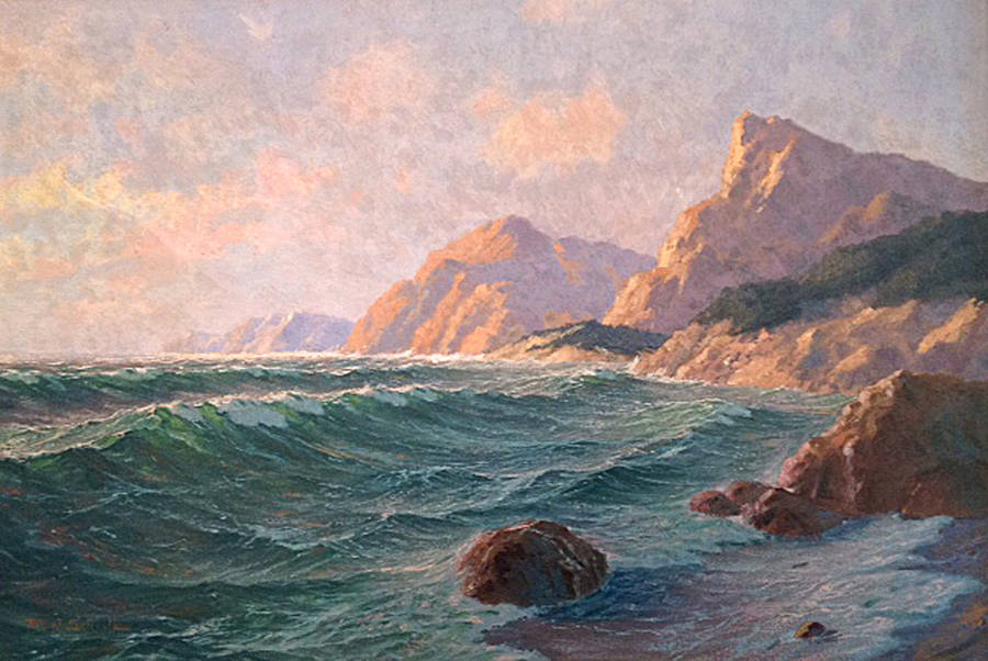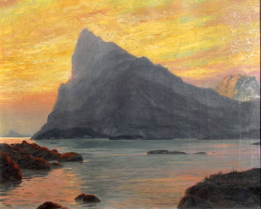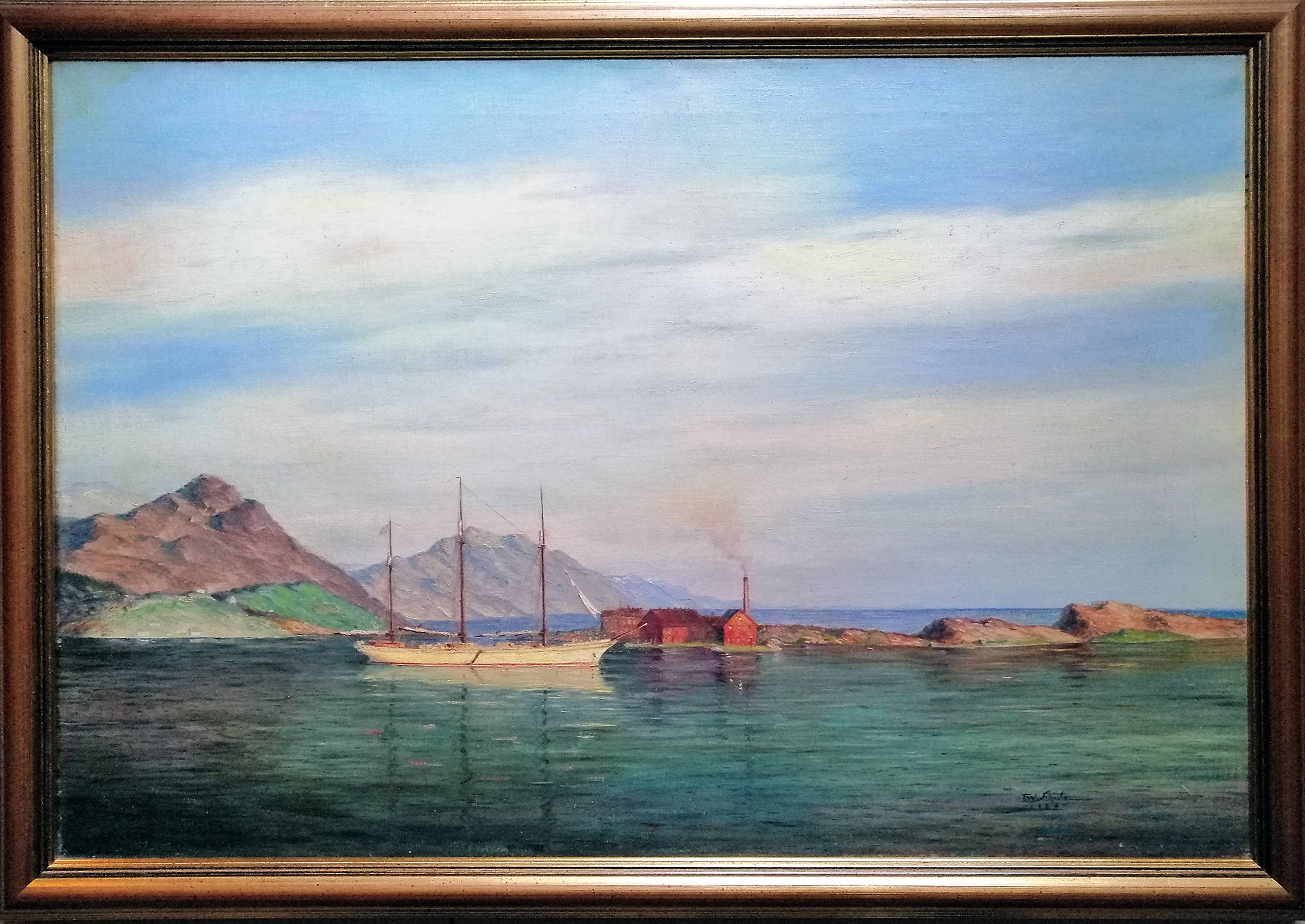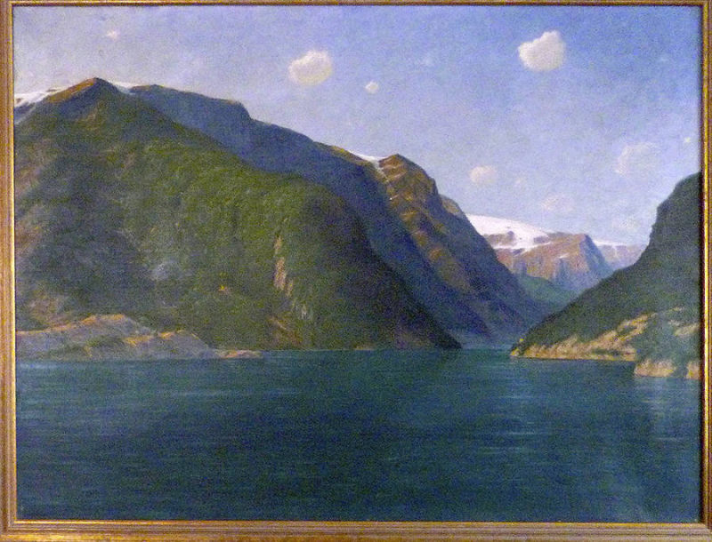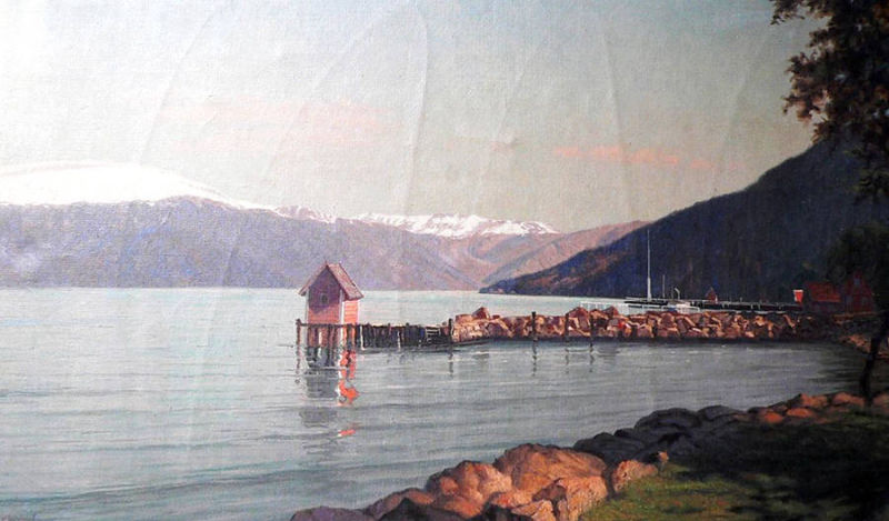 214 Privatbesitz, Herr Rolf M. aus Deutschland, Gemälde: Fjordlandschaft (vermutlich Norwegen),