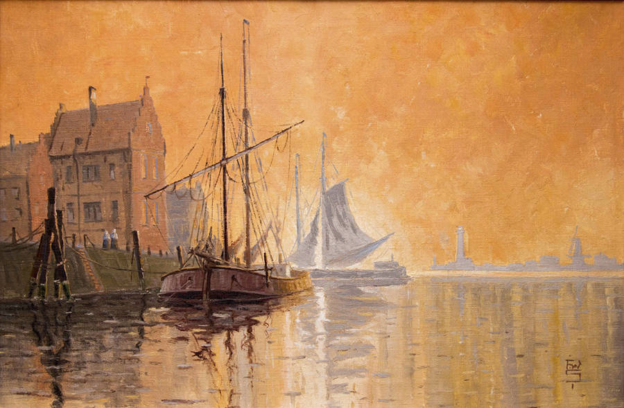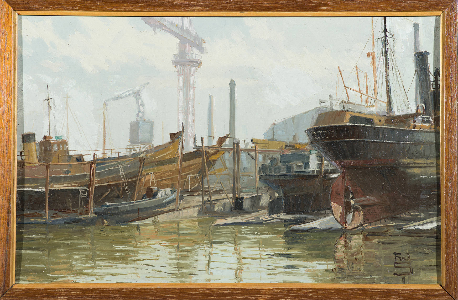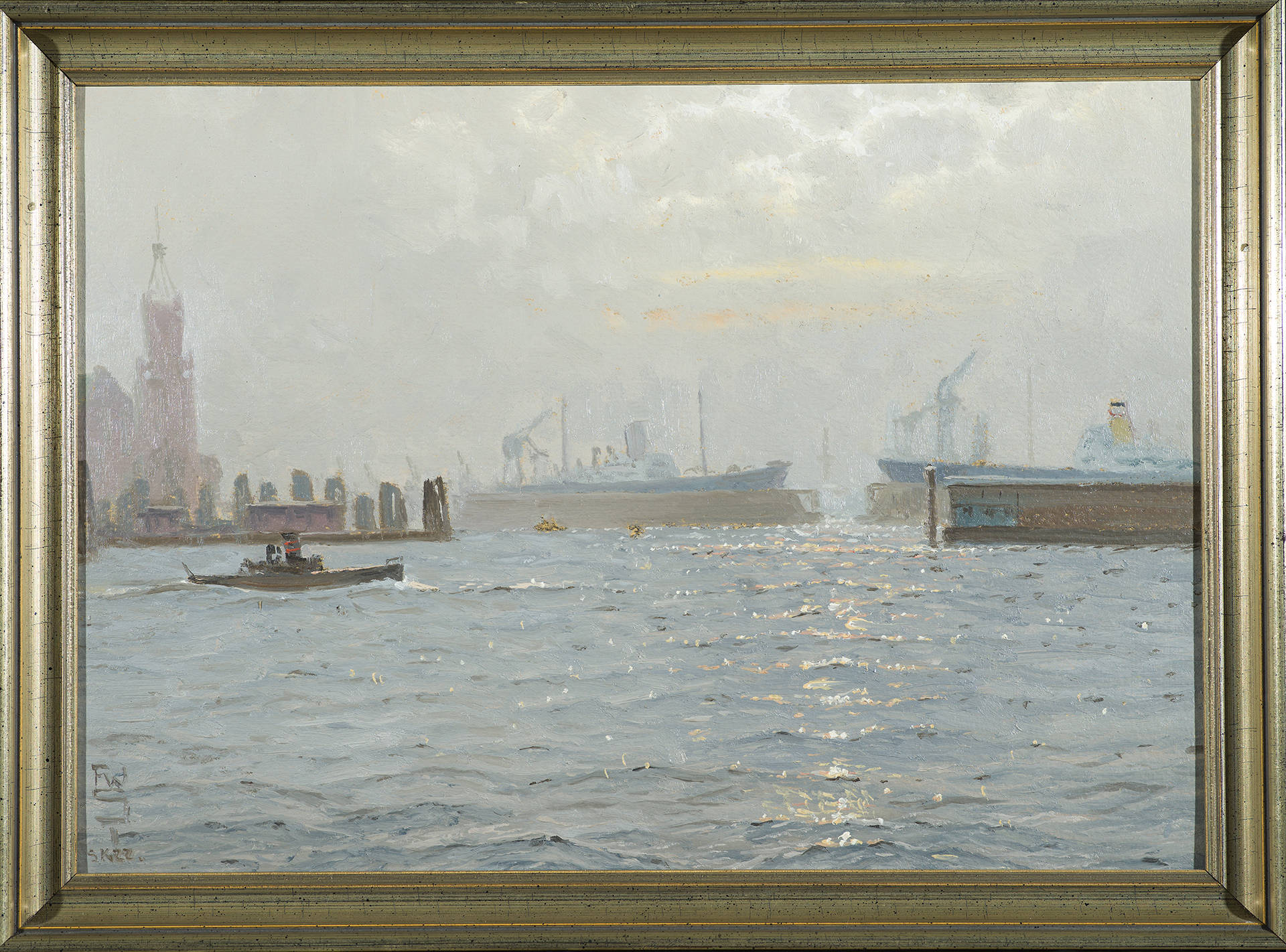 215 Privatbesitz, Herr Rolf M., Leverkusen - Deutschland, Gemälde: "vor dem Haugesund" (Haugesund ist eine Hafenstadt vor der Südwestküste Norwegens); Leinwand auf Keilrahmen,Größe: 101 x 71 cm