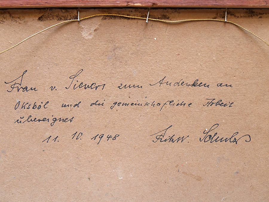 237 Die Rückseite des Bildes 237, das in Besitz von Dr. von Sivers in Rheinland-Pfalz ist. Eine schöne persönliche Widmung, bei der die Handschrift von Fritz W. Schulz gut zu erkennen ist