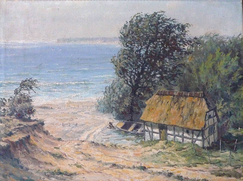 236 Privatbesitz, Frau K. Thürmann in Nordrhein-Westfalen. Sie erbte das Bild von ihrem Vater Dr. Gerig, seines Zeichens Zahnarzt, der einst im Lager in Oxböl die Familie von Fritz W. Schulz medizinisch versorgte und das Bild daraufhin als Entlohnung erhielt. Ölgemälde, Größe: 55 x 48 cm ohne Rahmen