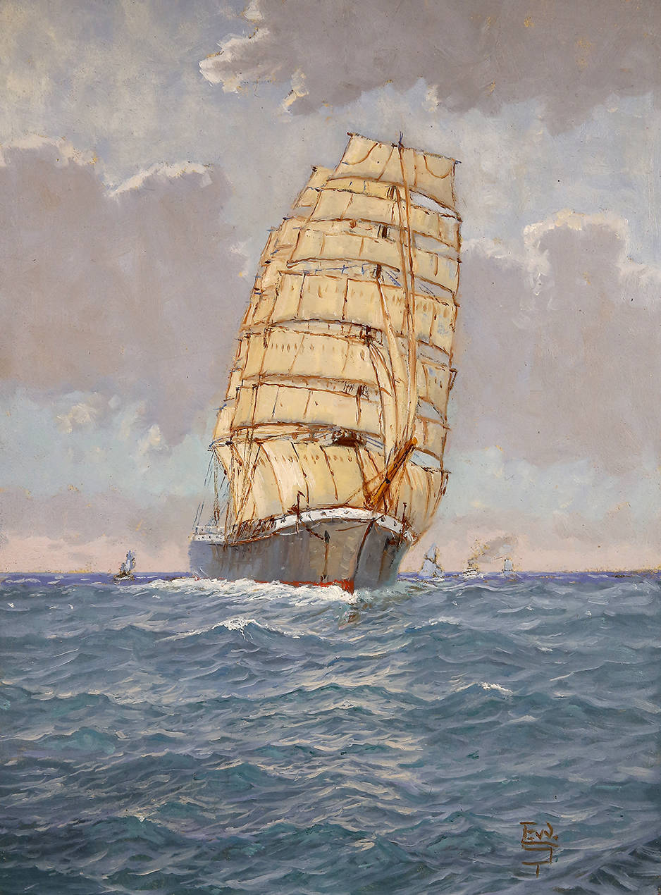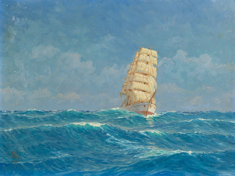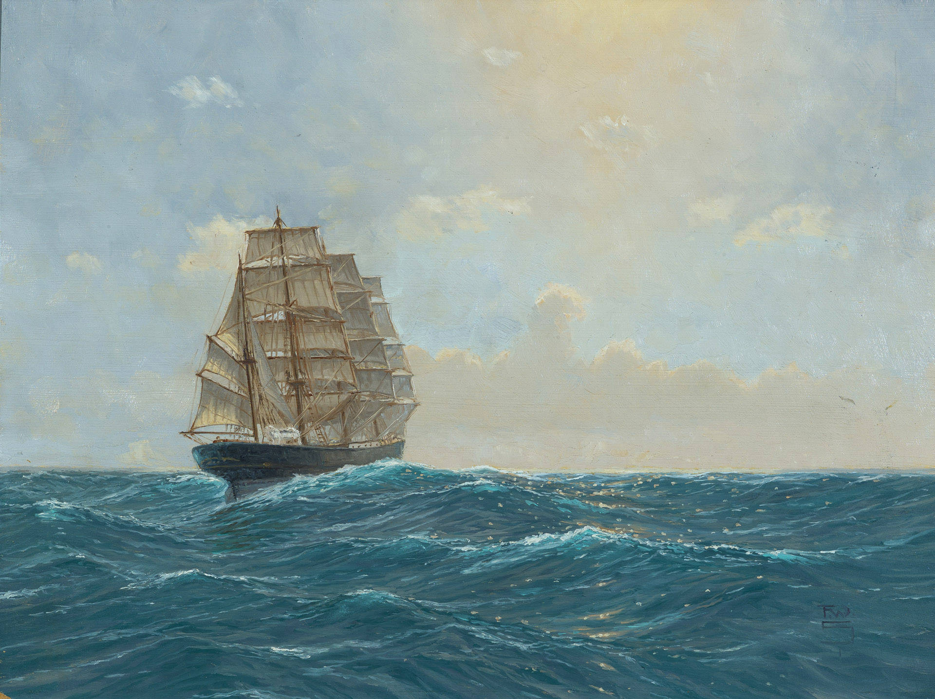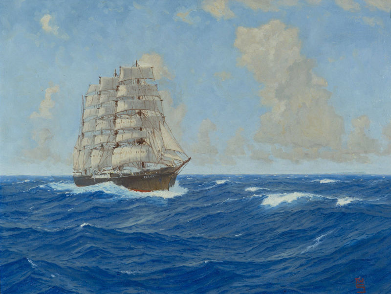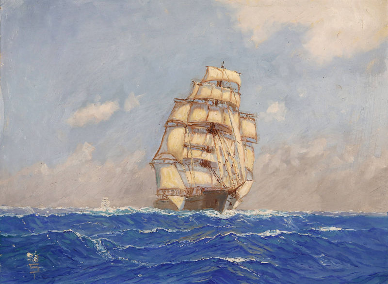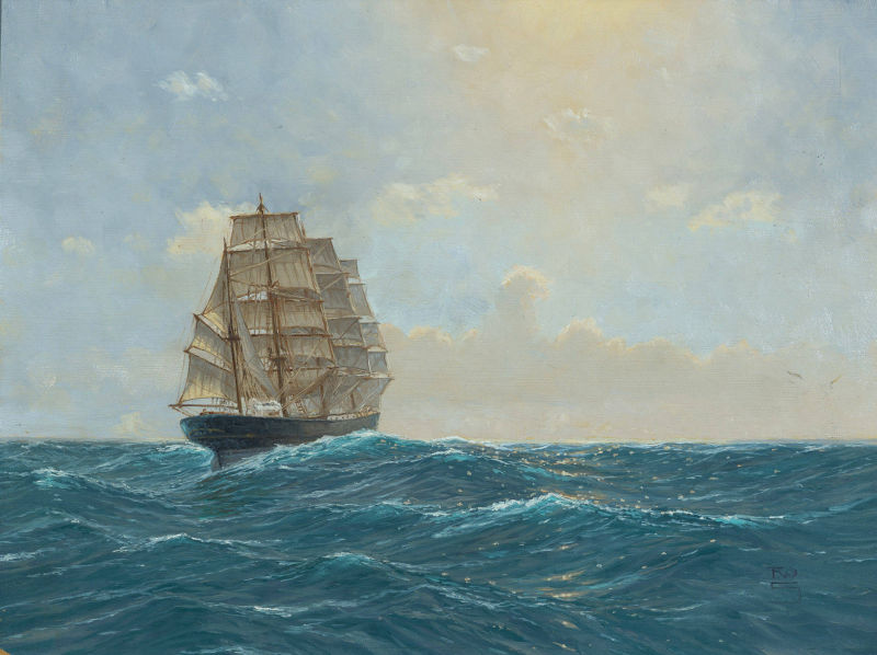 403 Öl auf Hartfaser, 40 x 30 cm, "Viermastbark im Südatlantik"