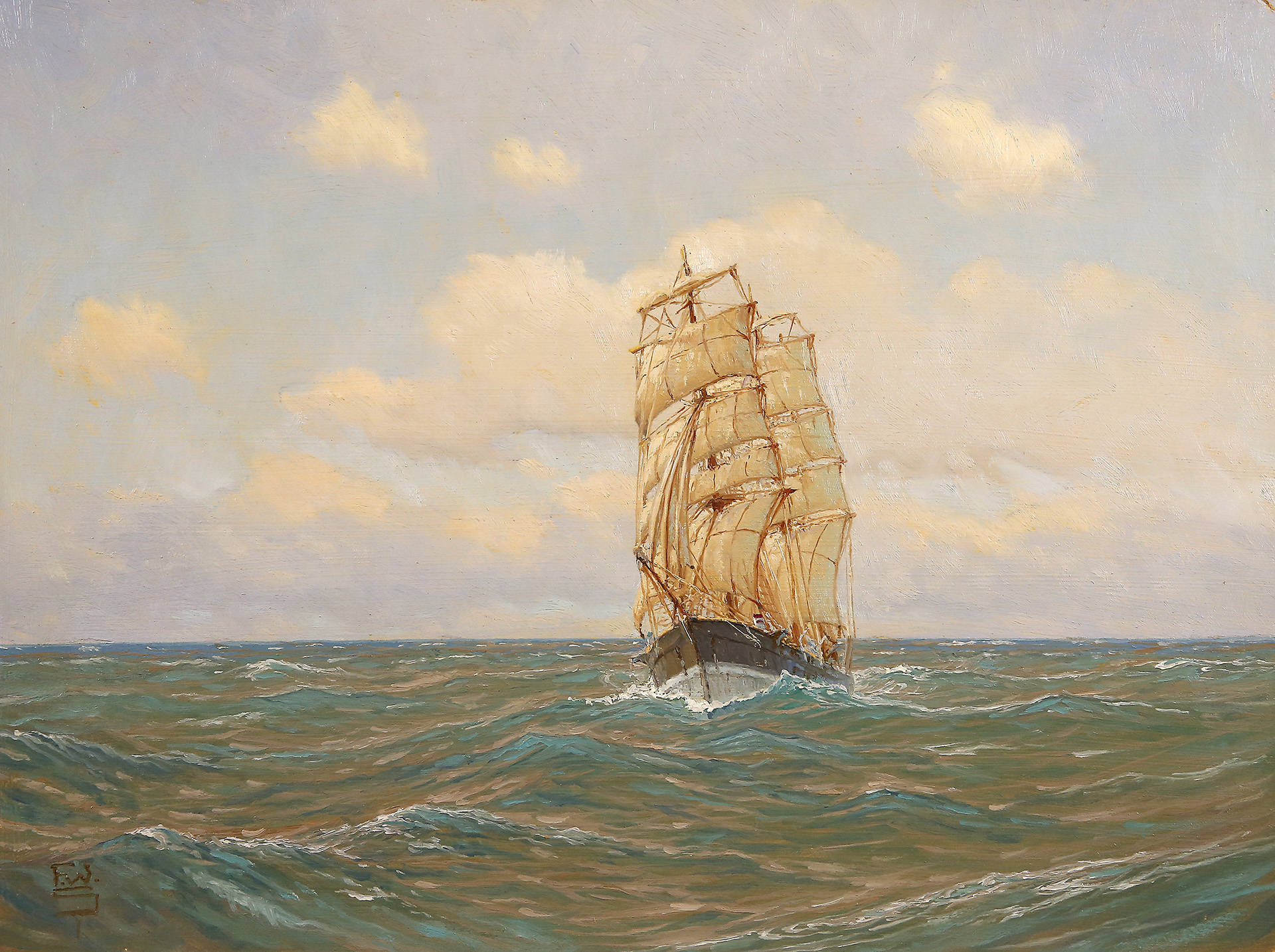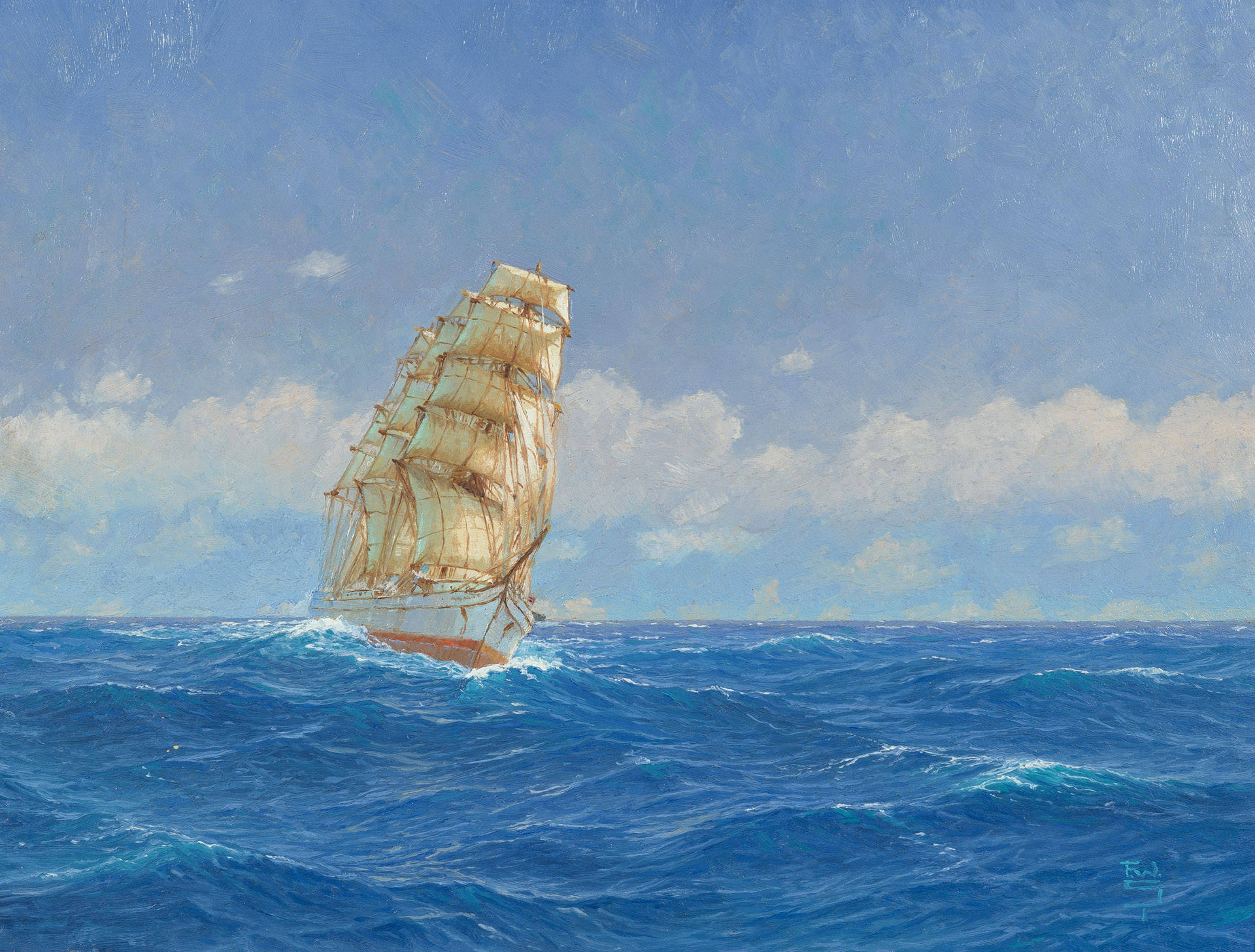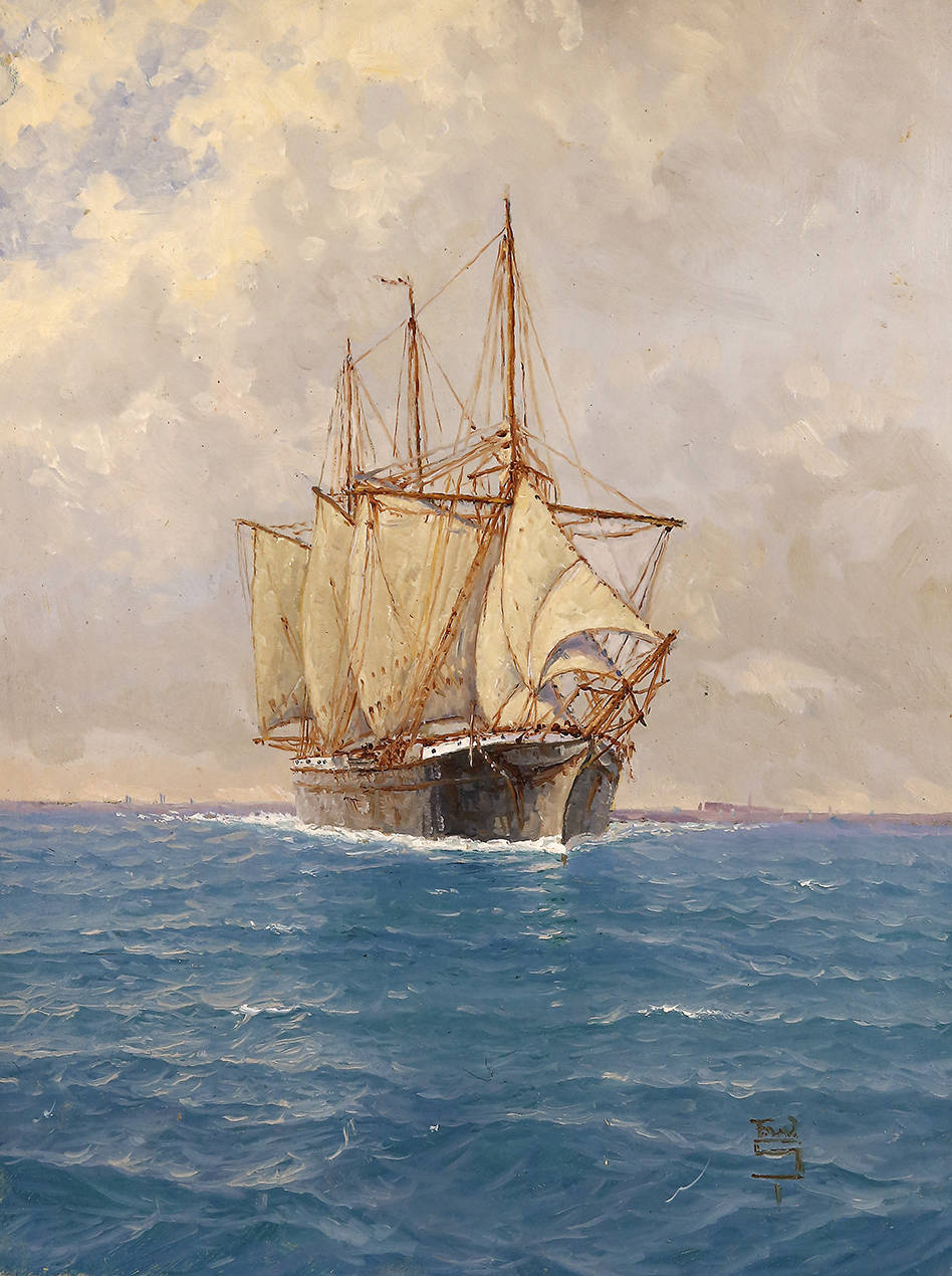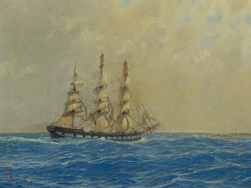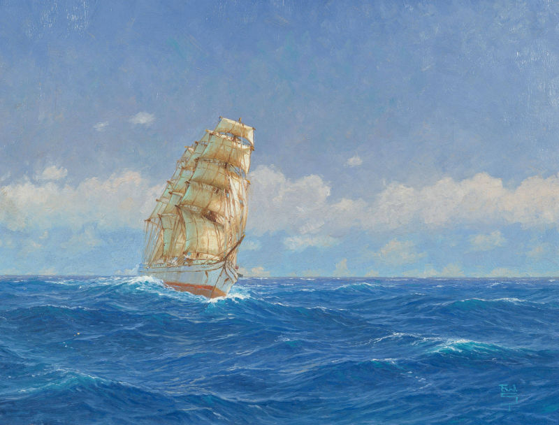 403 Öl auf Hartfaser, 40 x 30 cm, "Viermastbark im Südatlantik"