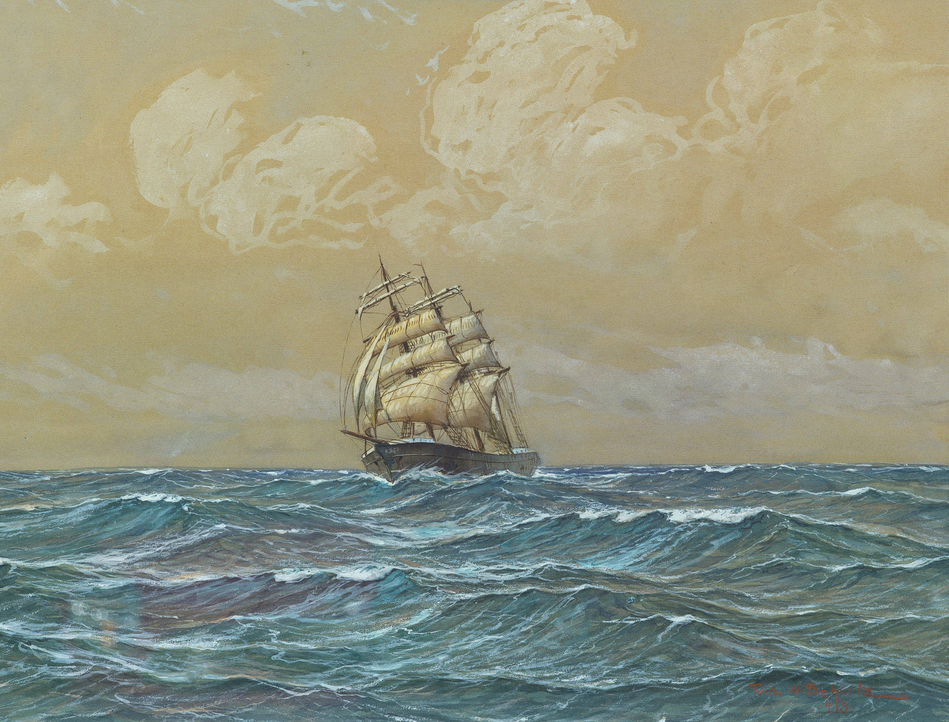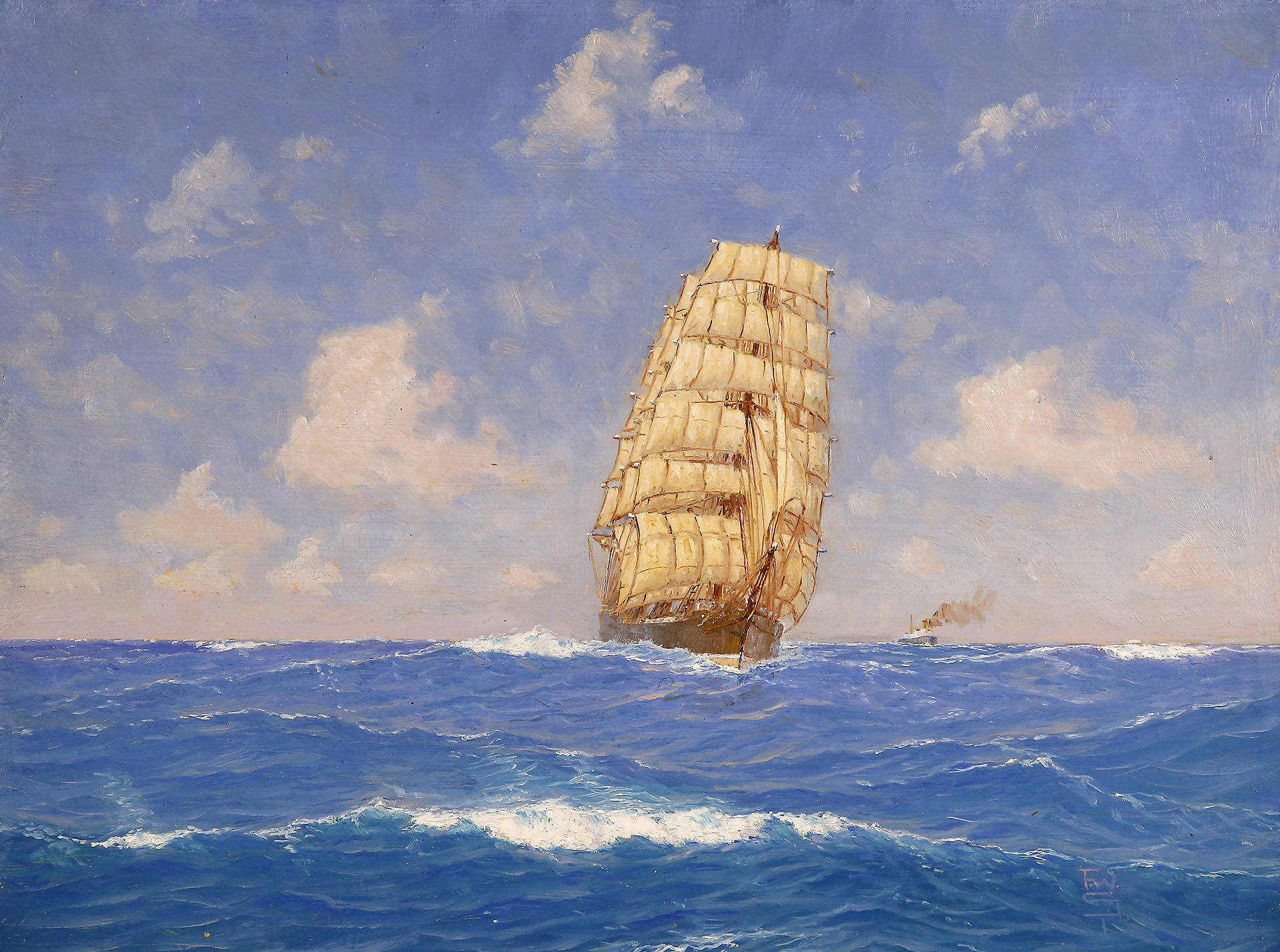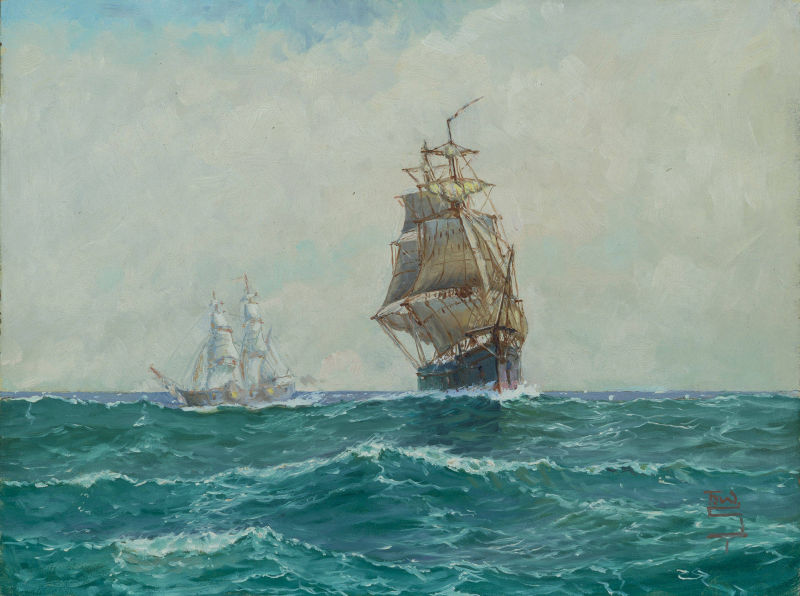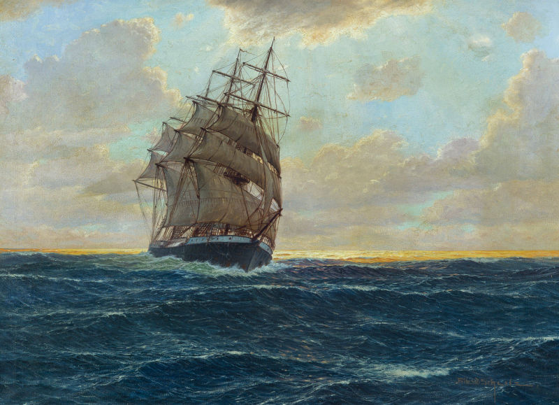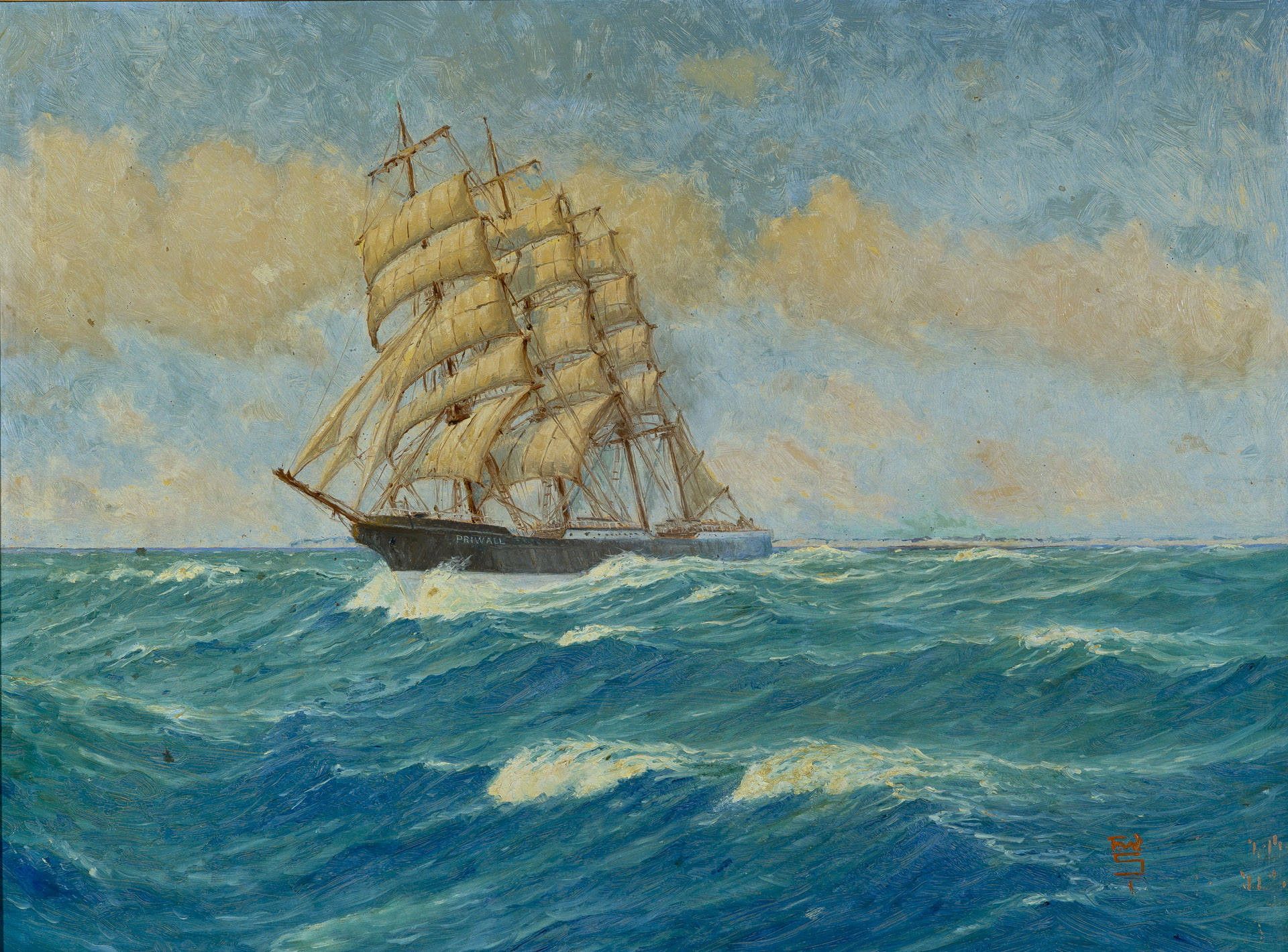 403 Öl auf Hartfaser, 40 x 30 cm, "Viermastbark im Südatlantik"