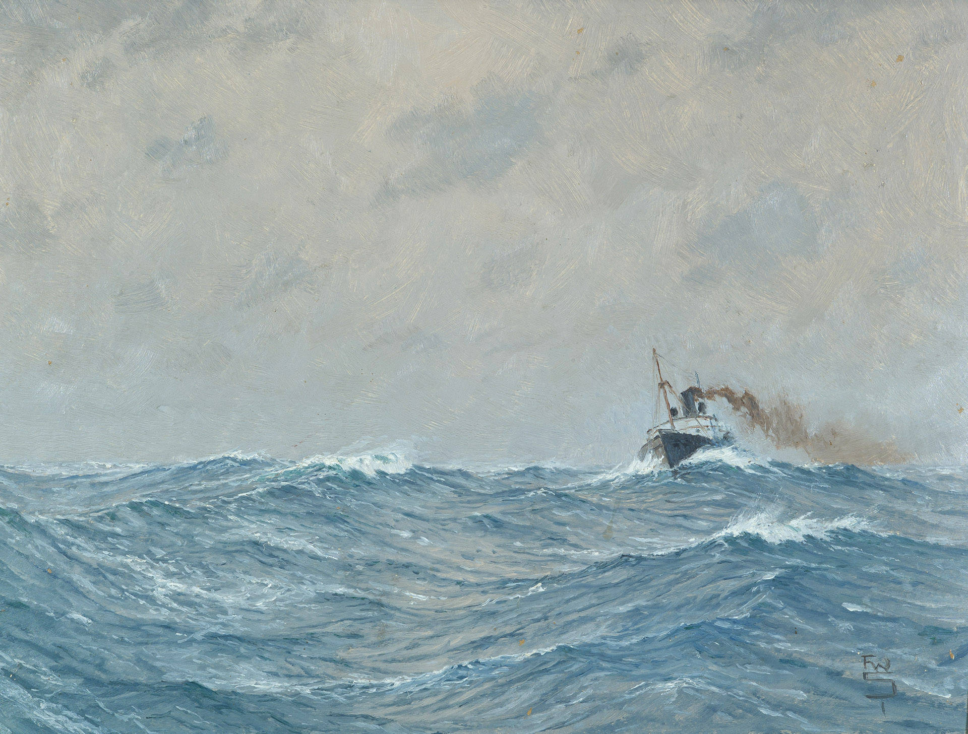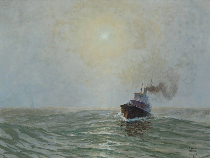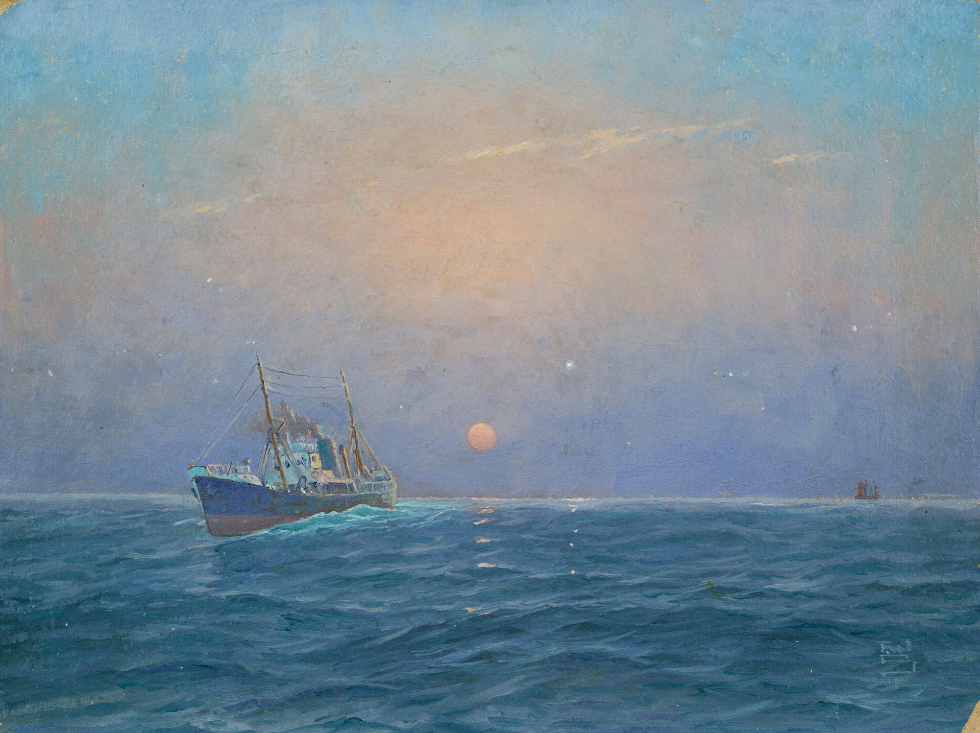 057 Öl auf Hartfaser, 40 x 29,5 cm, "Auf der Neufundlandbank"