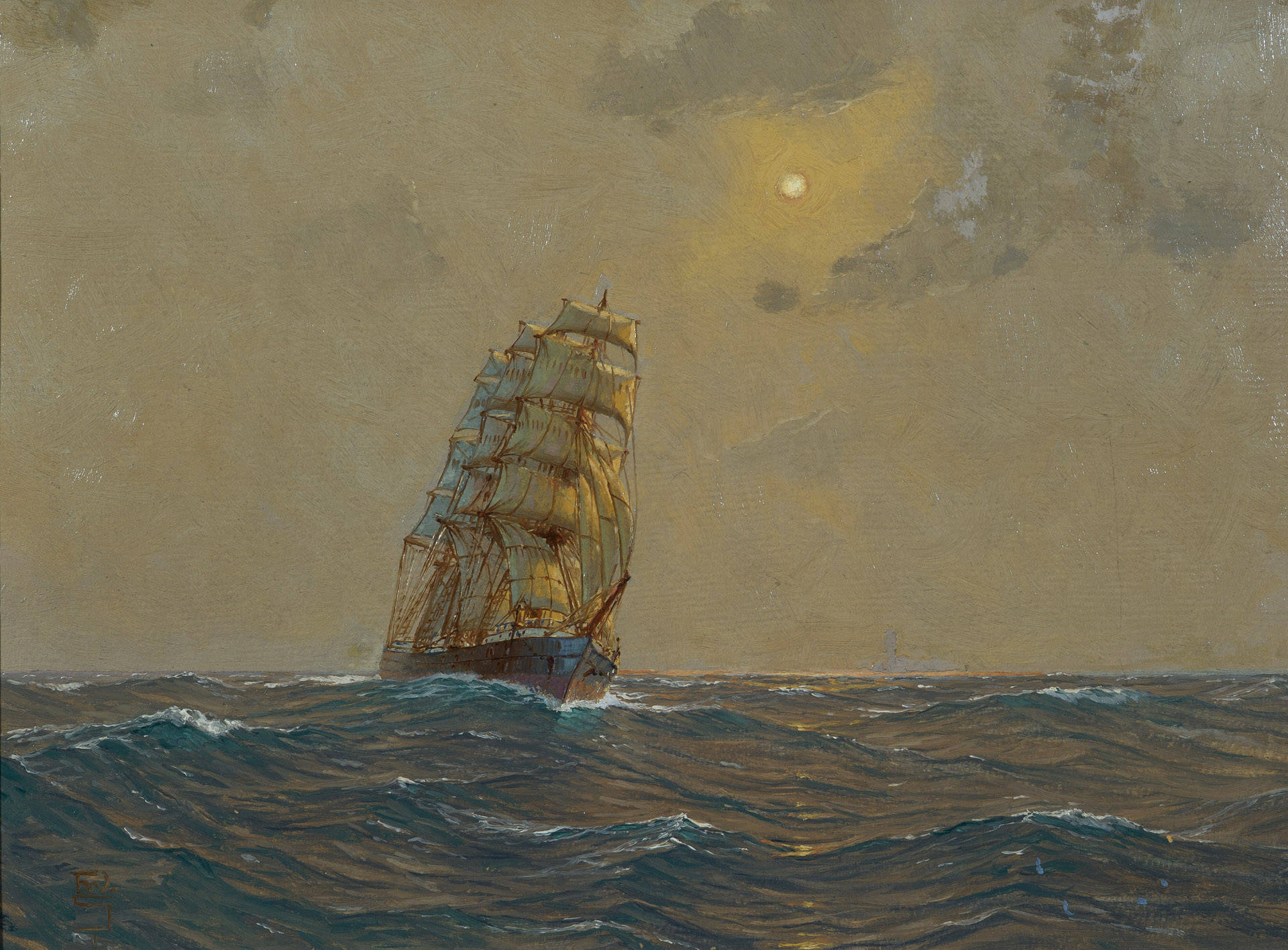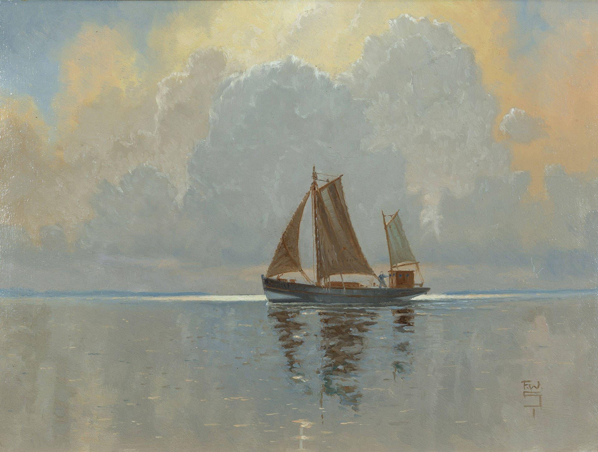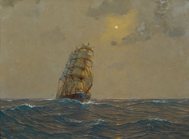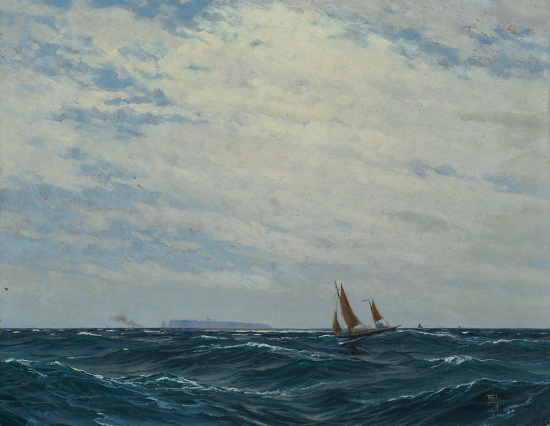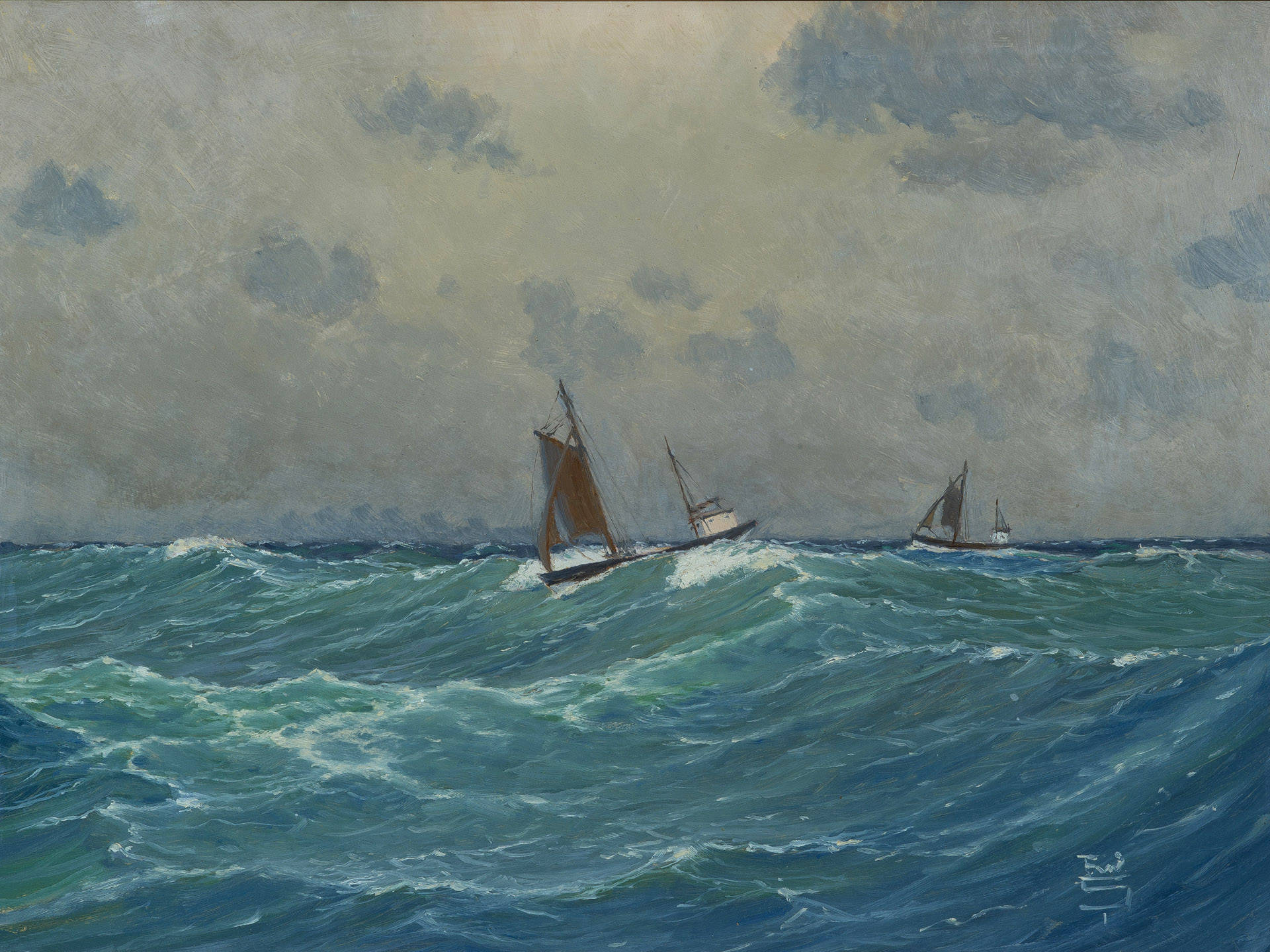 406 Öl auf Hartfaser, 40 x 30 cm, "Bei halbem Winde"