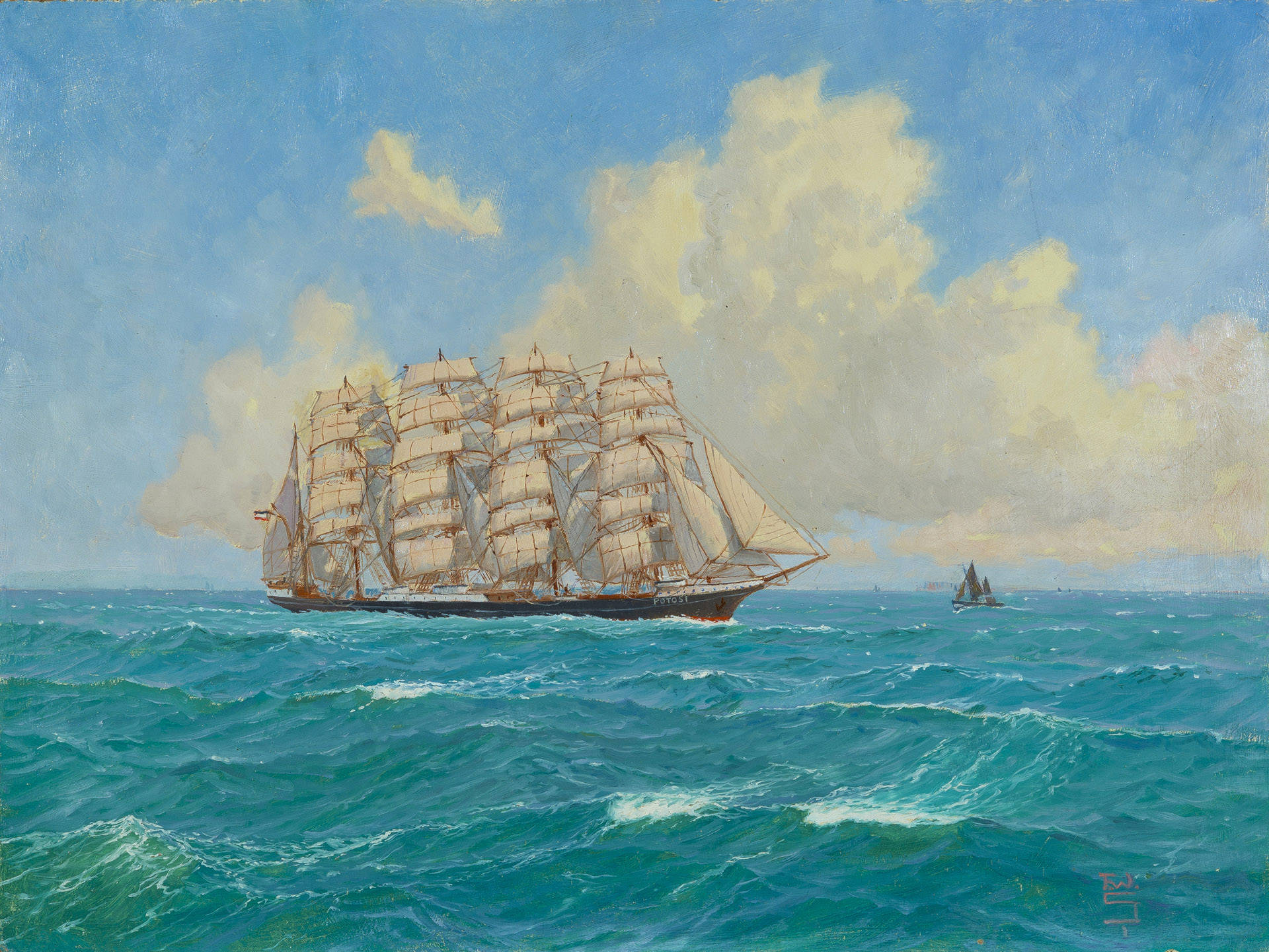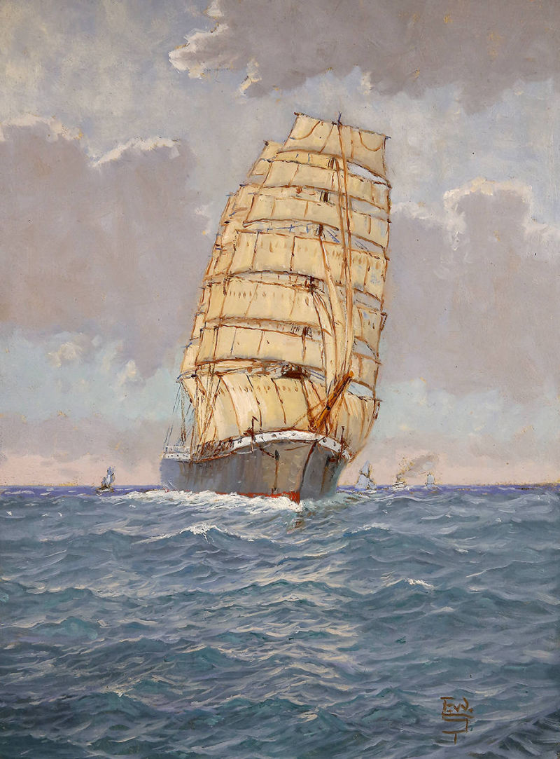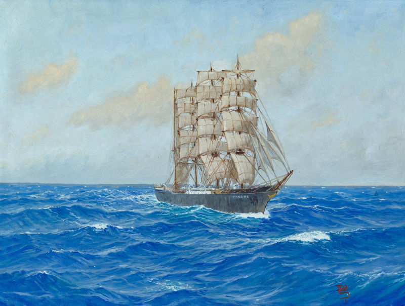 008 Öl auf Hartfaser, 59 x 45 cm, "Viermastbark Ponape vor der Brasilianischen Küste"