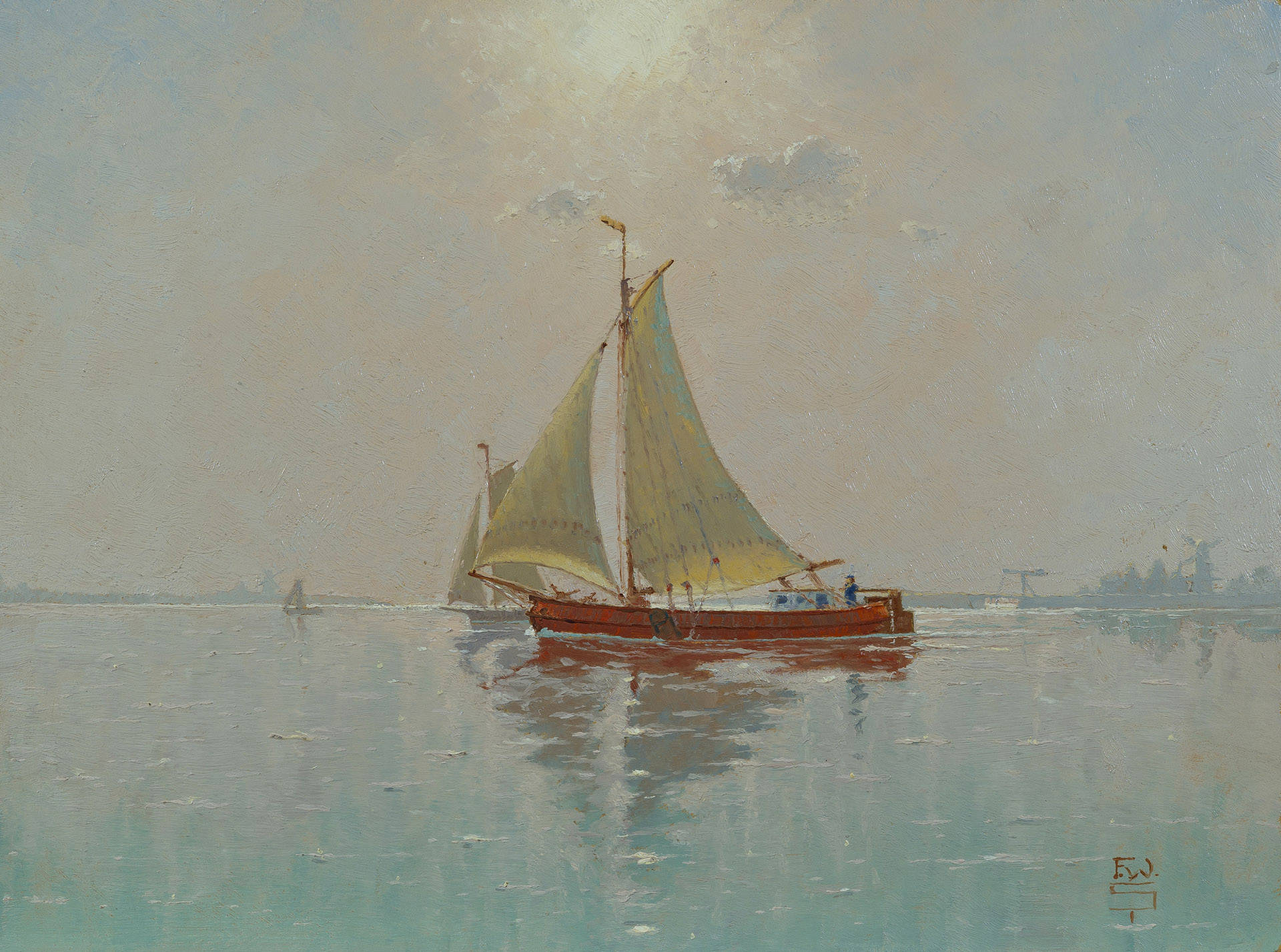 055 Öl auf Hartfaser, 40 x 30 cm, "Die rote Tjalk"