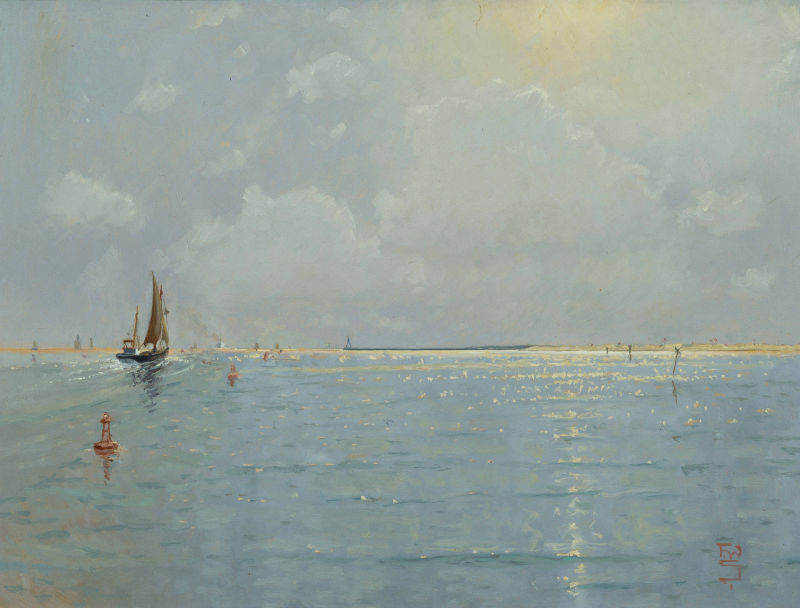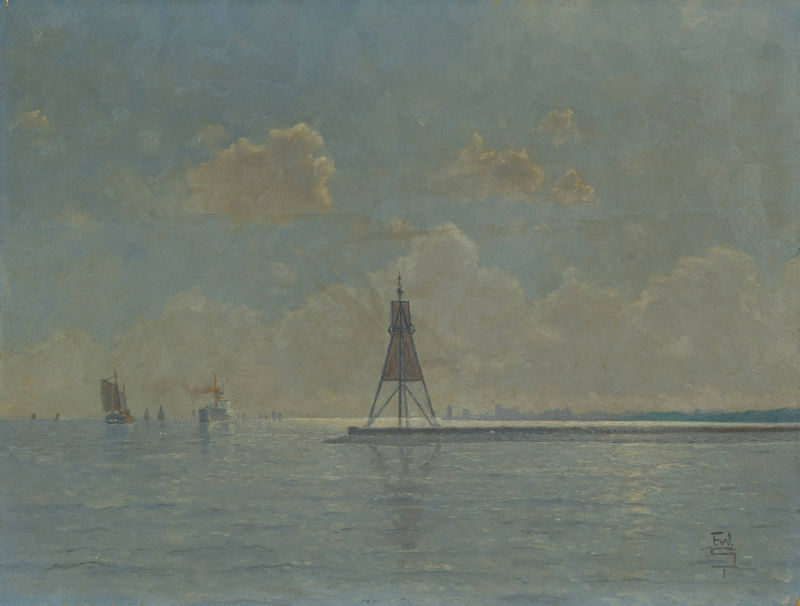 066 Öl auf Hartfaser, 40 x 30 cm, "Vor der Elbmündung"