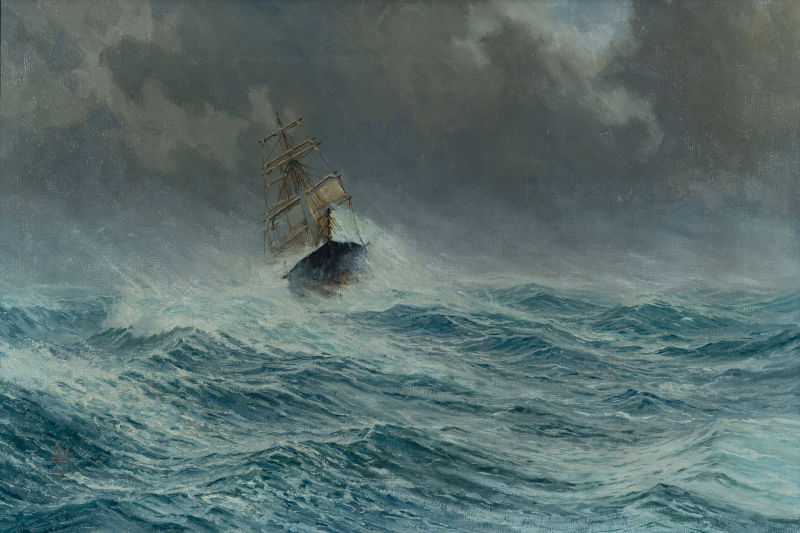 125 Öl auf Hartfaser, 40 x 30 cm, "Am Winde durch die Biscaya"