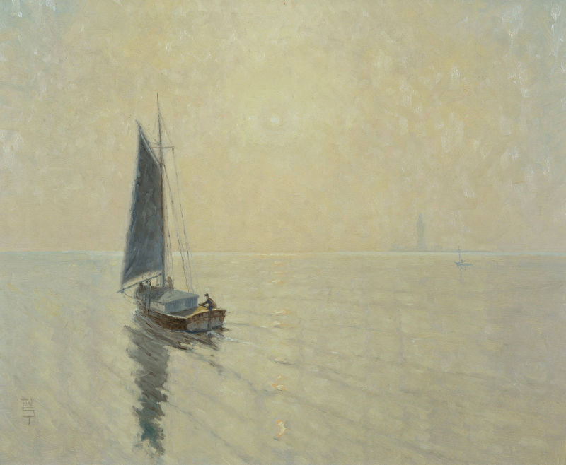 006 Öl auf Hartfaser, 40 x 30 cm, "In Nebel und Dünung"