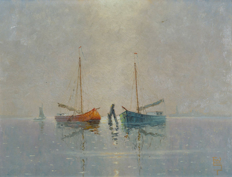 005 Öl auf Hartfaser, 30 x 40 cm, "Fischerflotte"