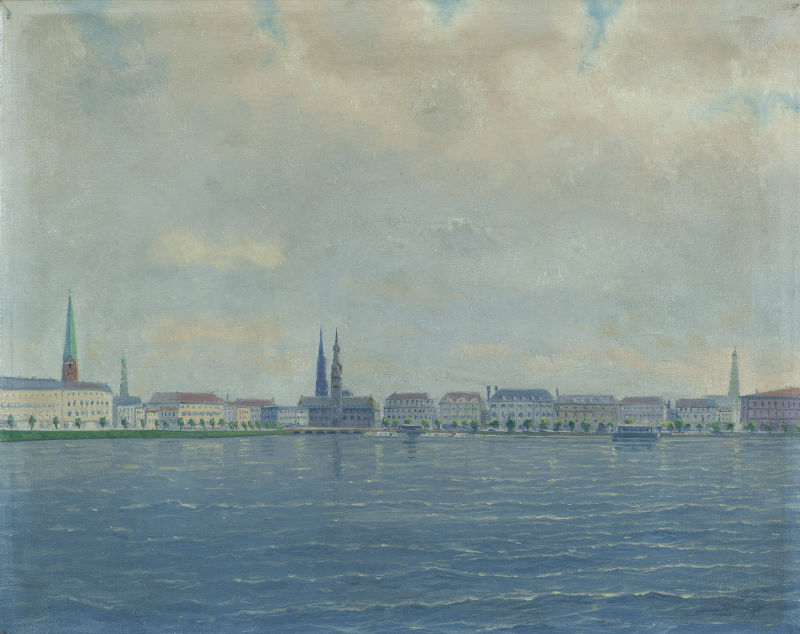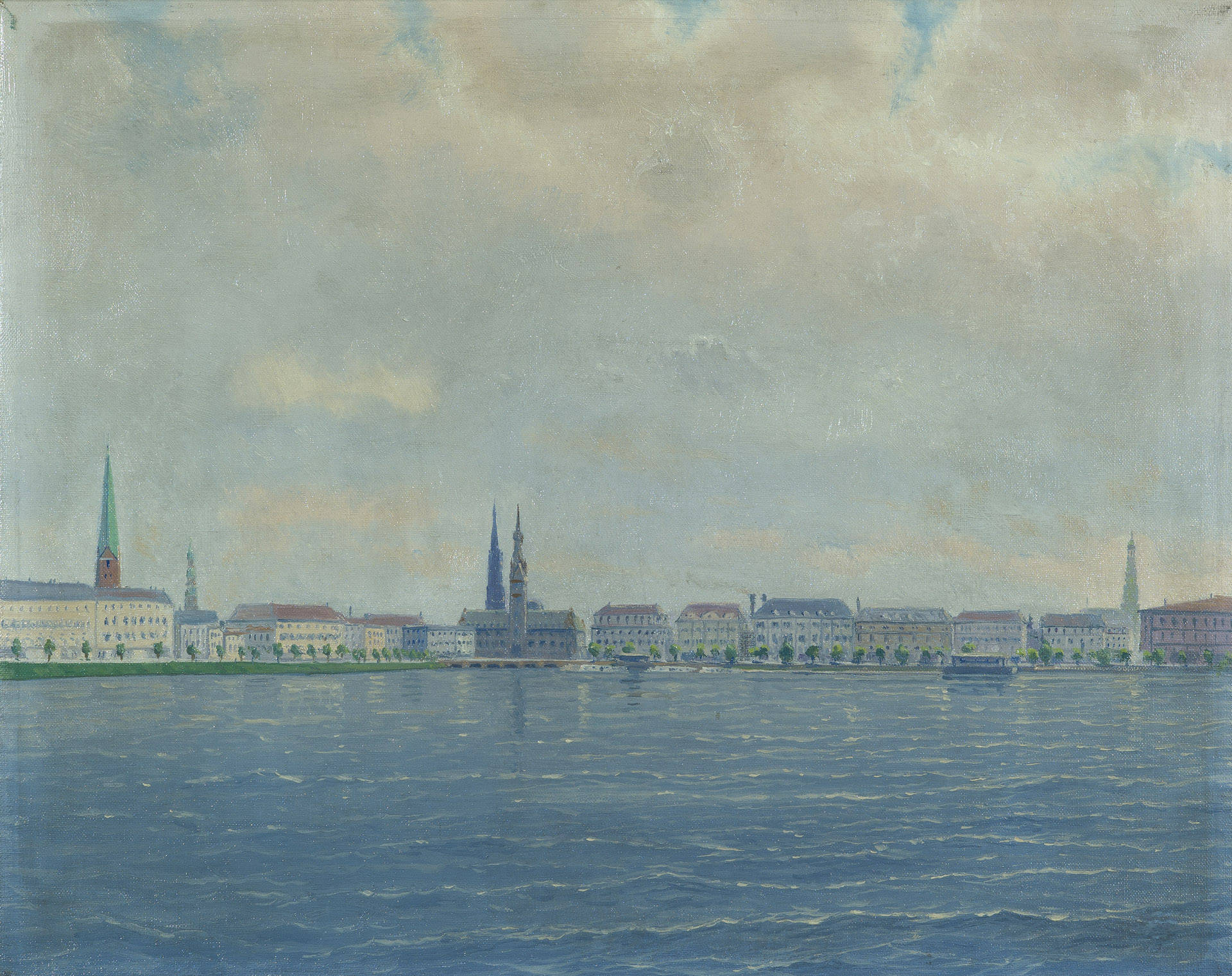 128 Öl auf Leinwand, 50 c 40 cm, Aussenalster, Sicht auf Rathaus und Jungfernstieg, "Ein echter Fritz W. Schulz sollte wegen Kunsthandel nicht signiert werden"