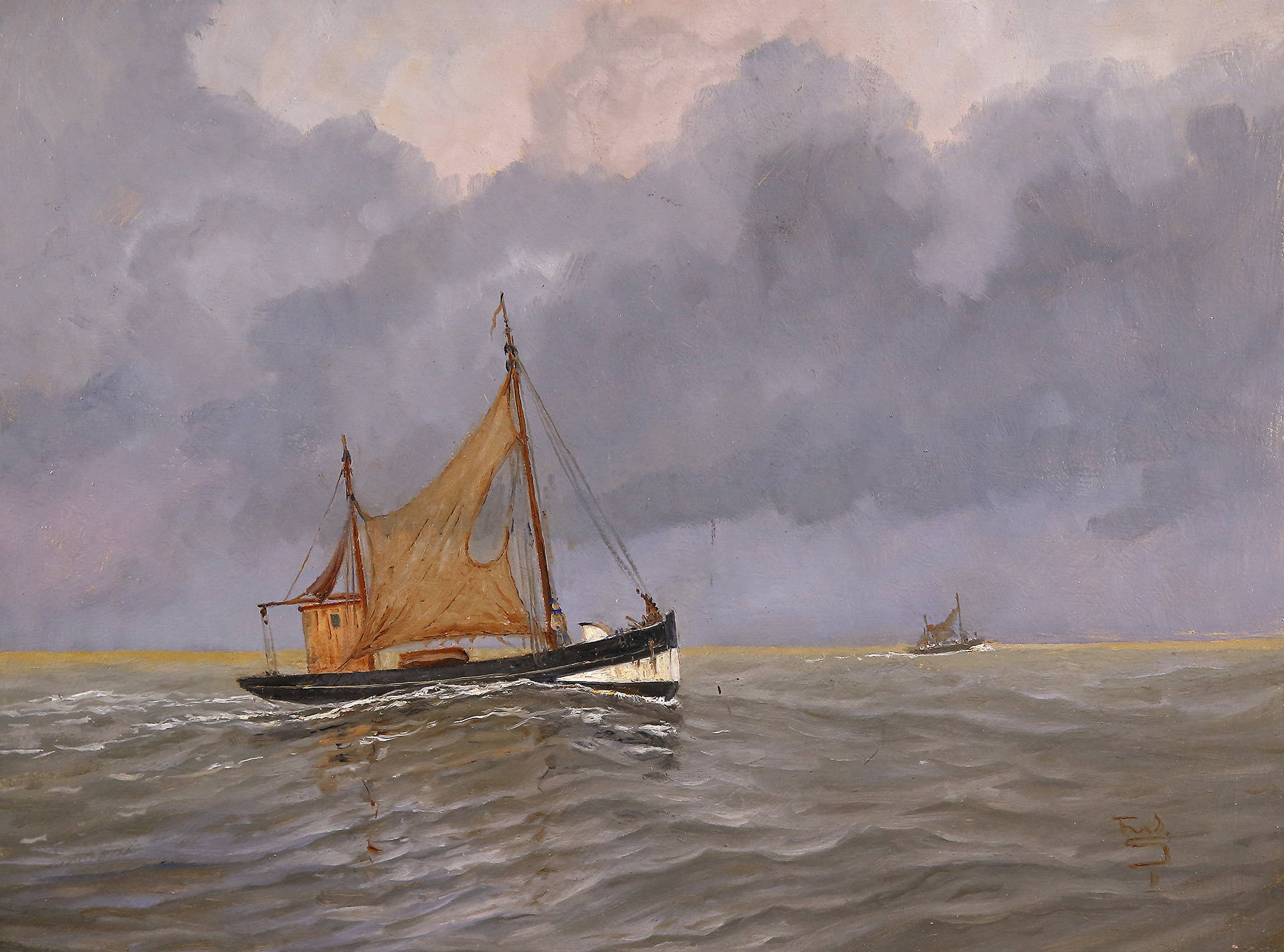 010 Öl auf Hartfaser, 40 x 30 cm, "Fischerboote bei Windstärke 7"