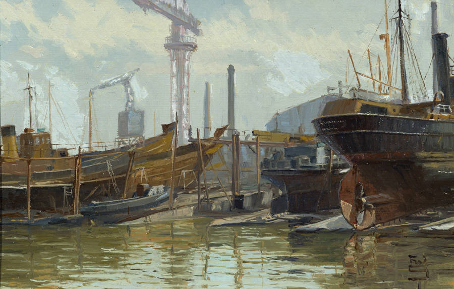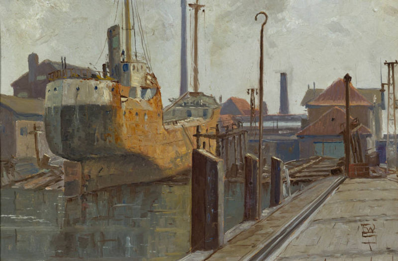 466 Öl auf Hartfaser,39 x 25 cm, "1927 Kieler Ufer"