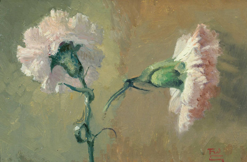 011 Öl auf Hartfaser, 20 x 14 cm, 1956, "Nelkenstudie"