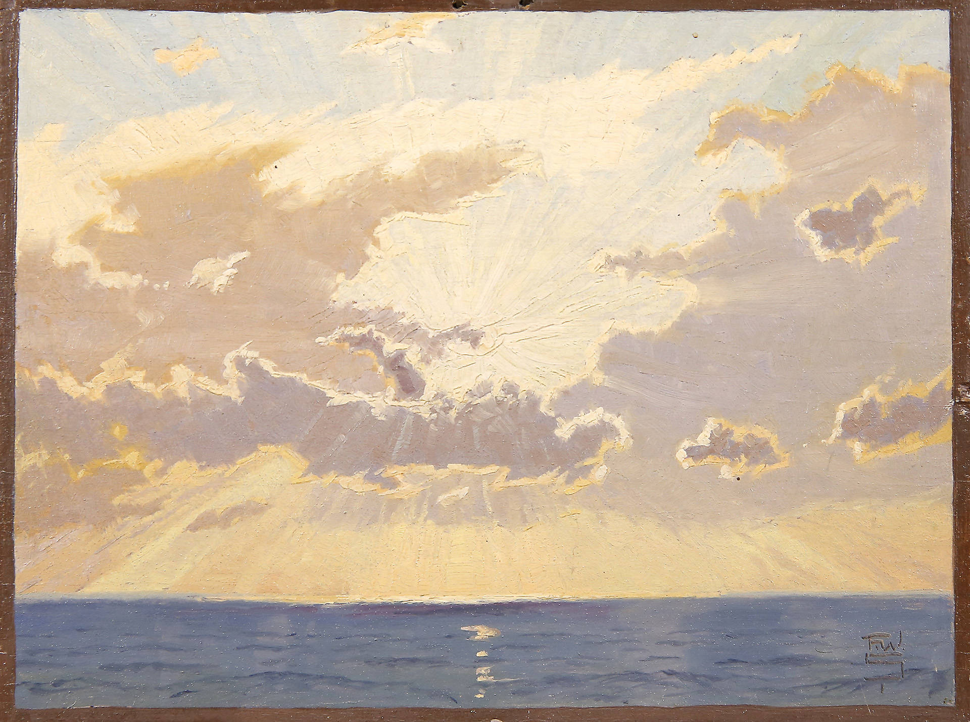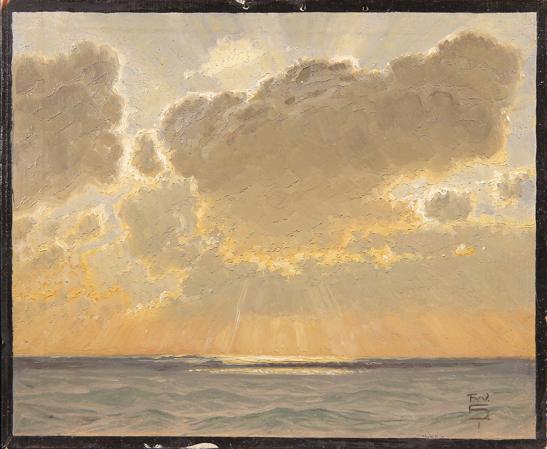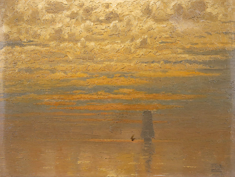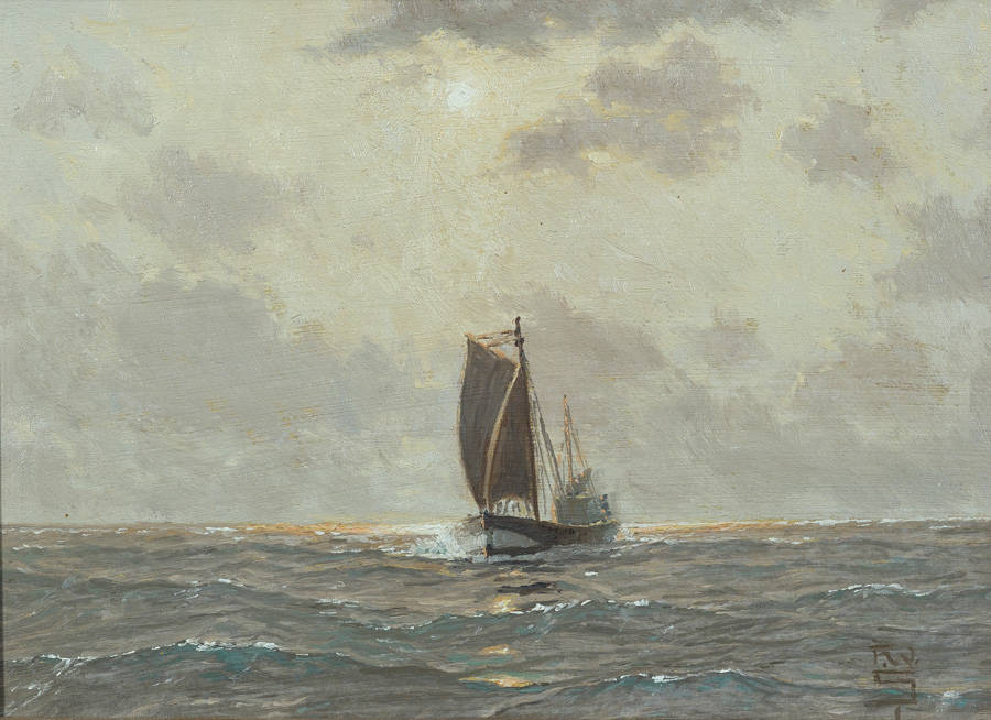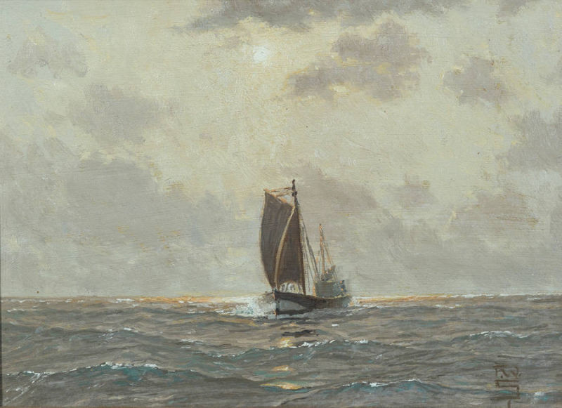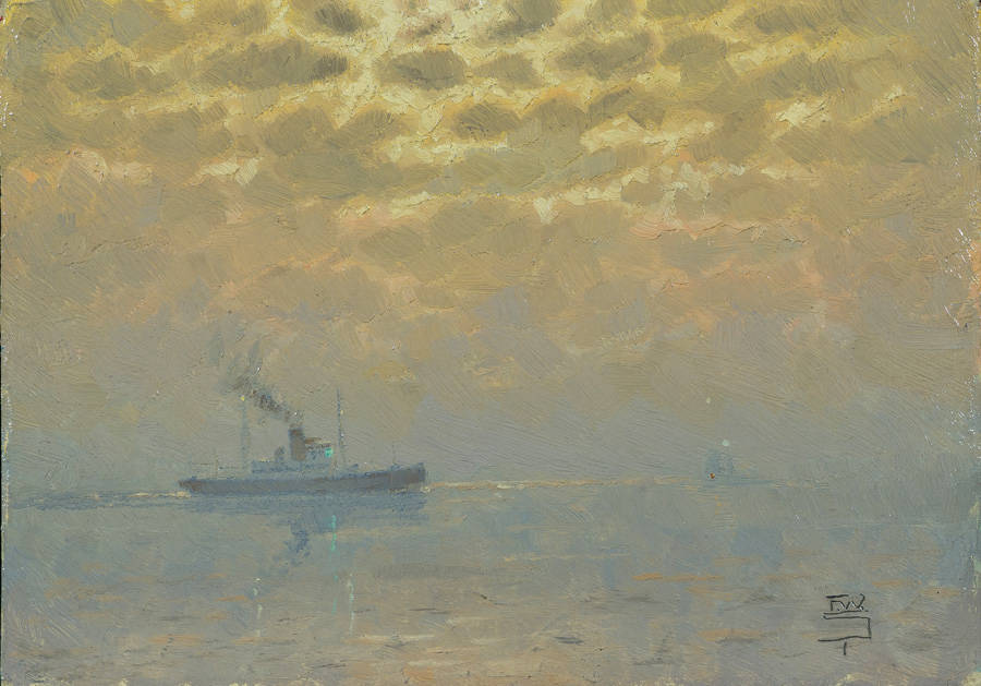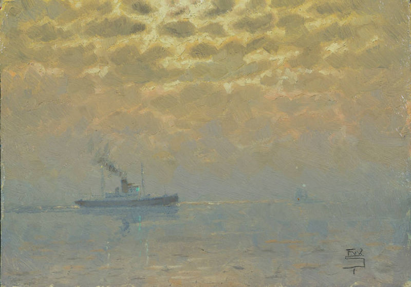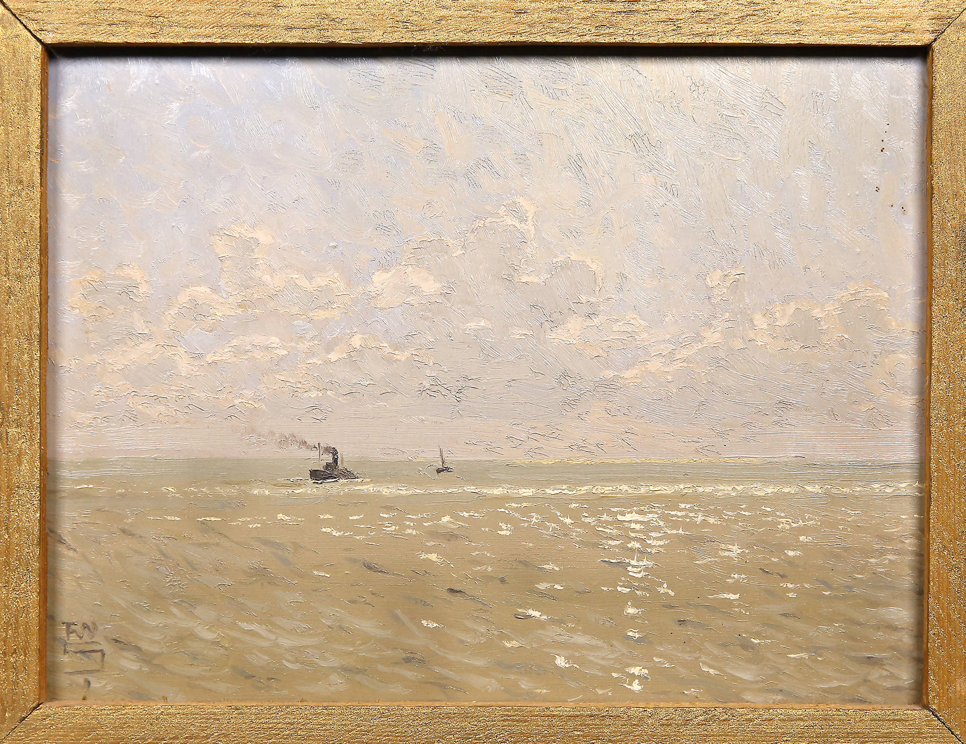 104 Öl auf Karton, 28 x 18 cm, "In der Abendsonne vor Holländischer Küste"