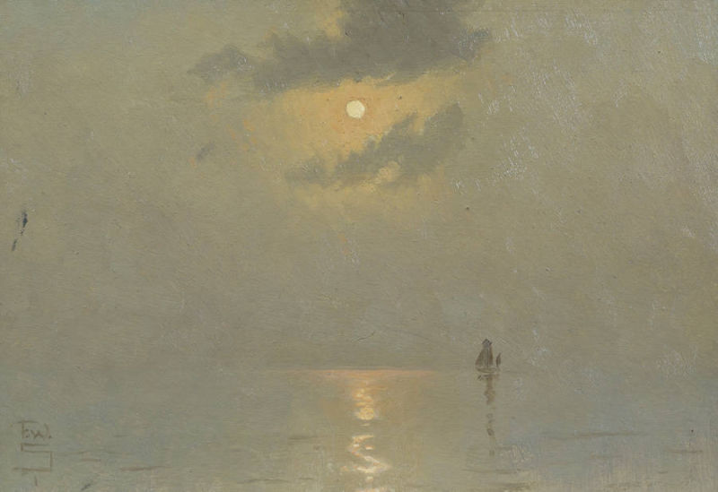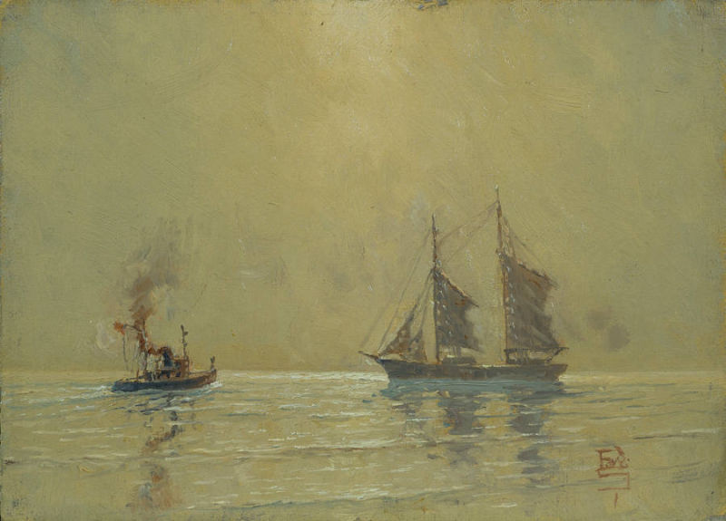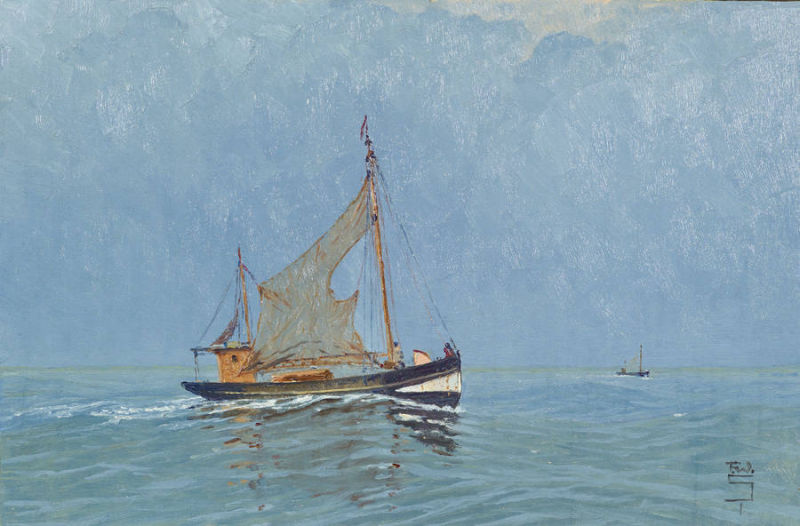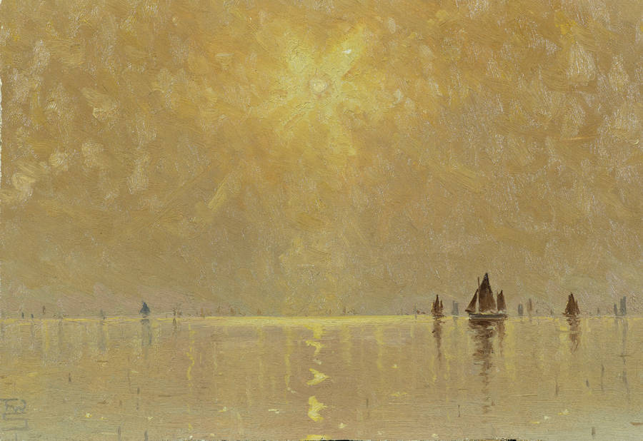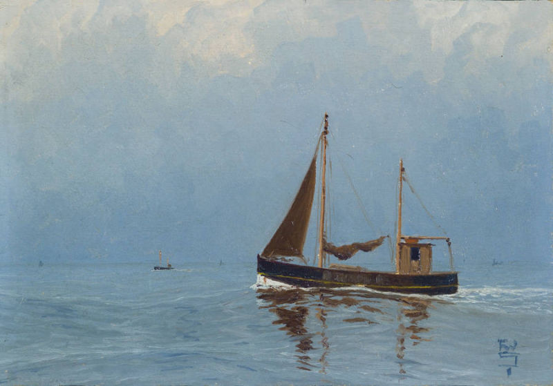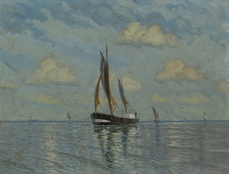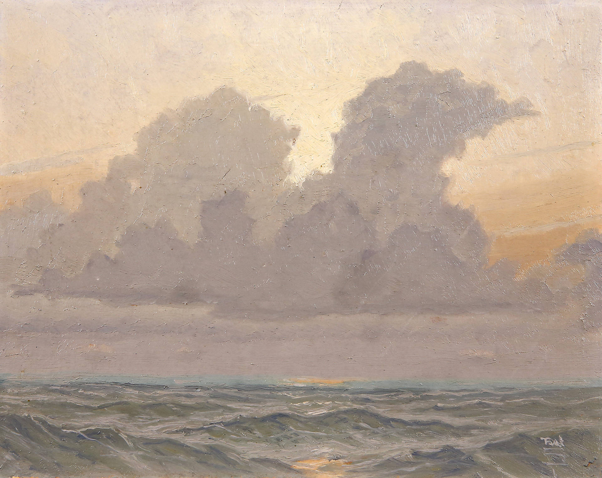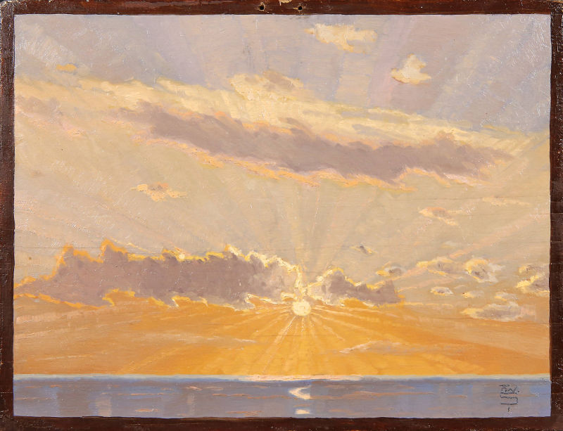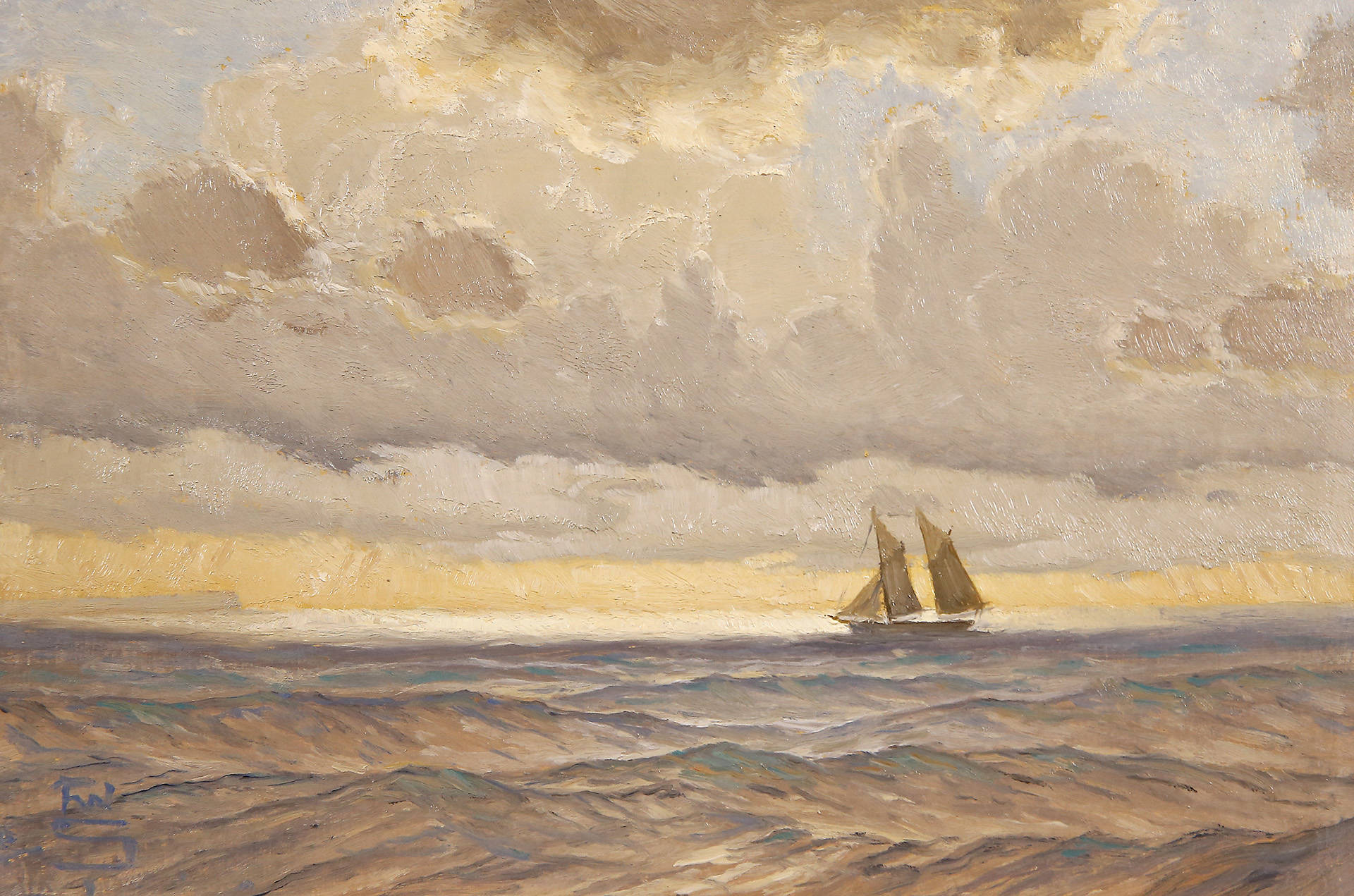 104 Öl auf Karton, 28 x 18 cm, "In der Abendsonne vor Holländischer Küste"