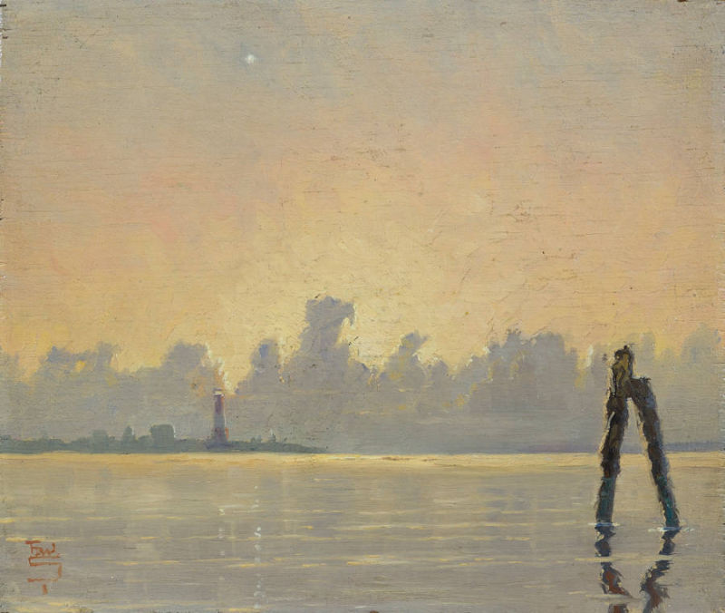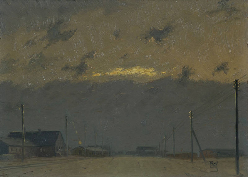 427 Öl auf Pappe, 30 x 21 cm, "Abenddämmerung"