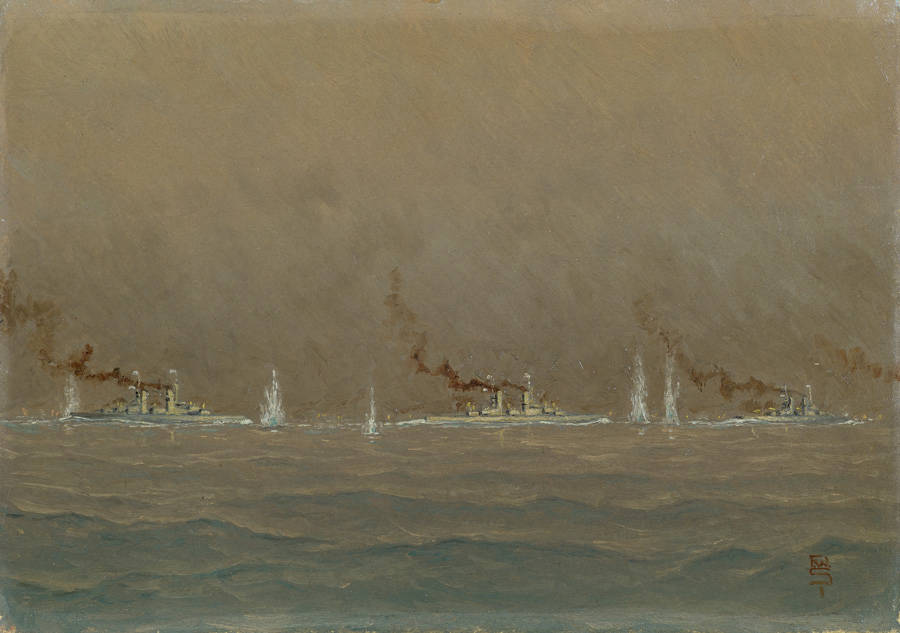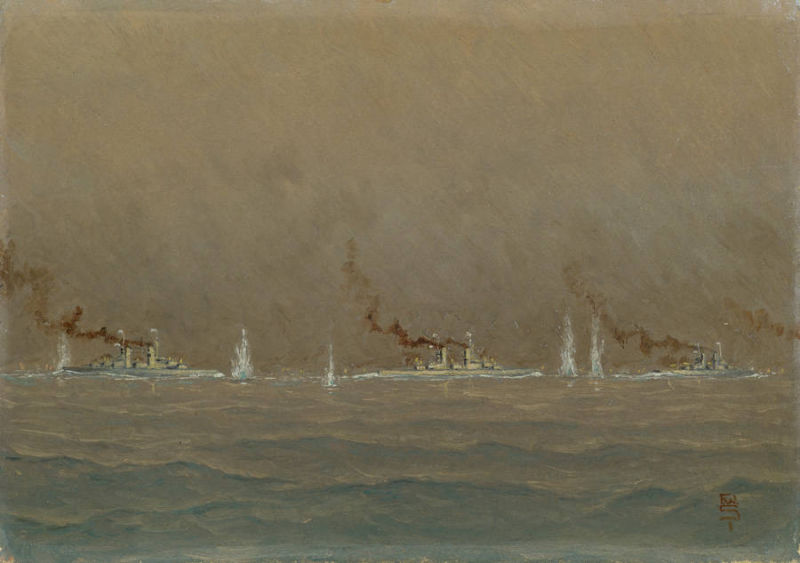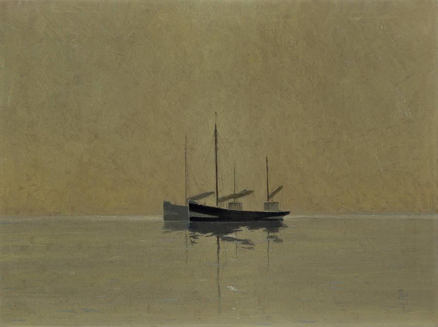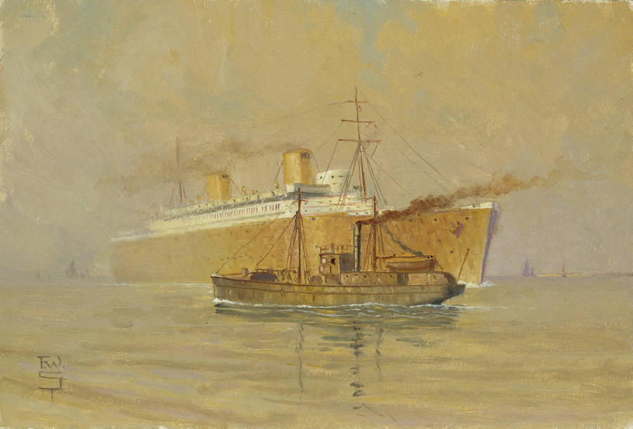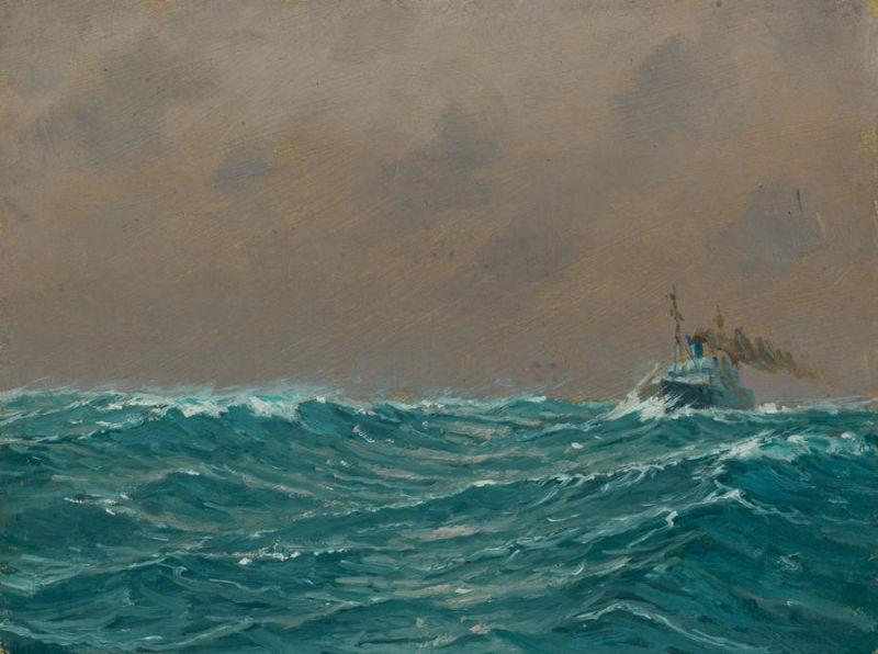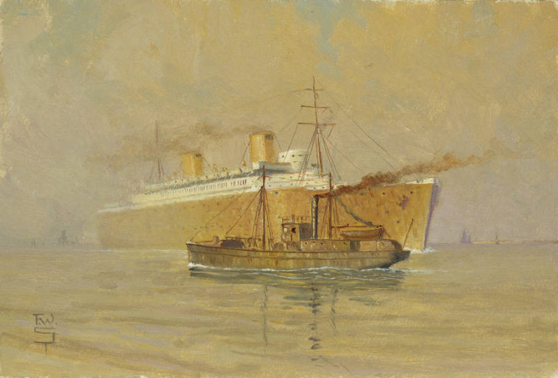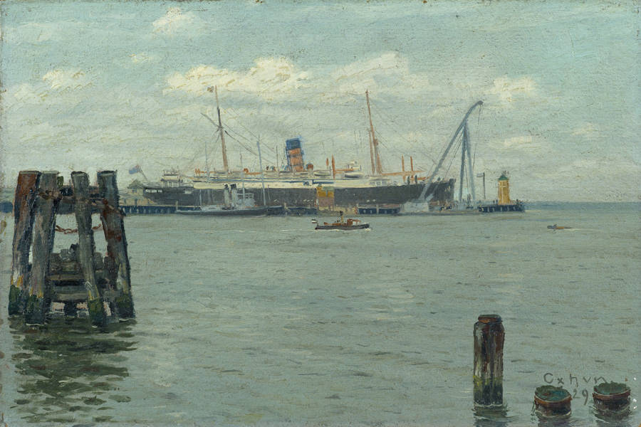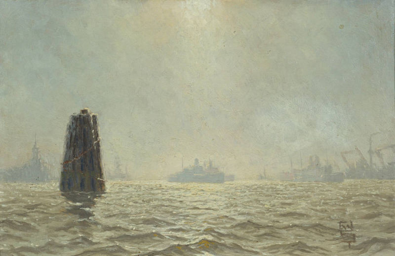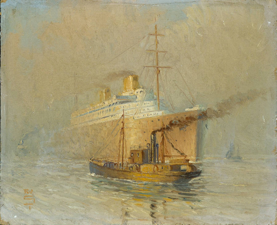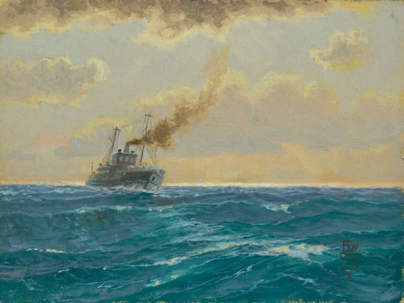 036 Öl auf Karton, 29,5 x 20 cm, 1929, ""Der Dampfer "Lancastria" wurde 1940 am 17.06. versenkt"