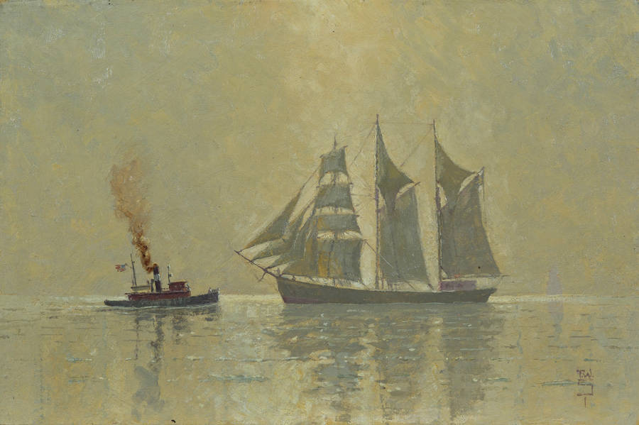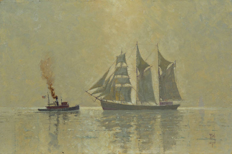 025 Öl auf Hartfaser, 30 x 20 cm "Der Lotse kommt"