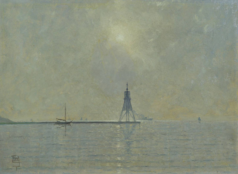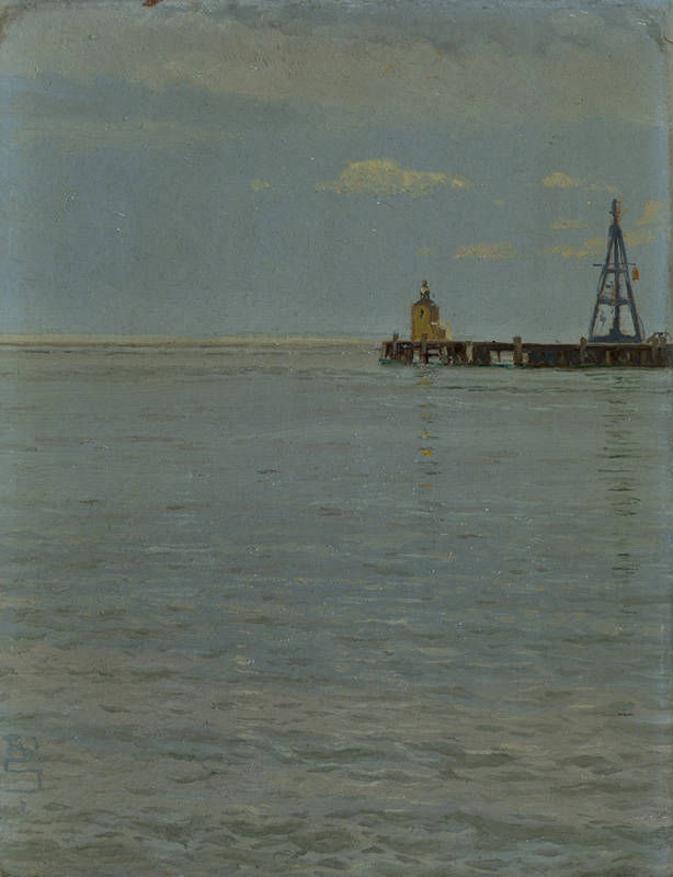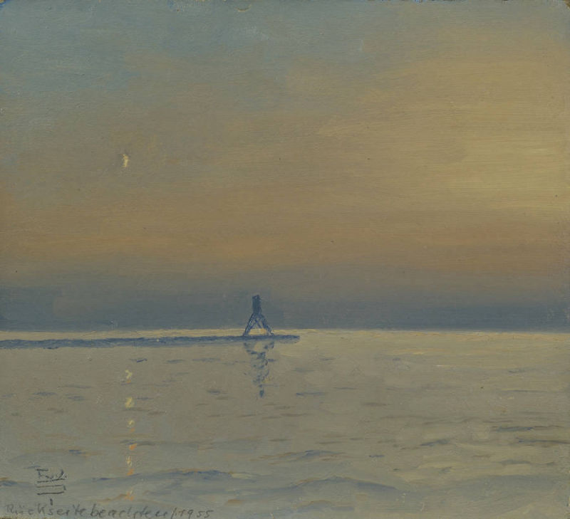 062 Öl auf Hartfaser, 39,5 x 29 cm, Juni 1954, "Das Seezeichen (Kugelbake Cuxhaven)"
