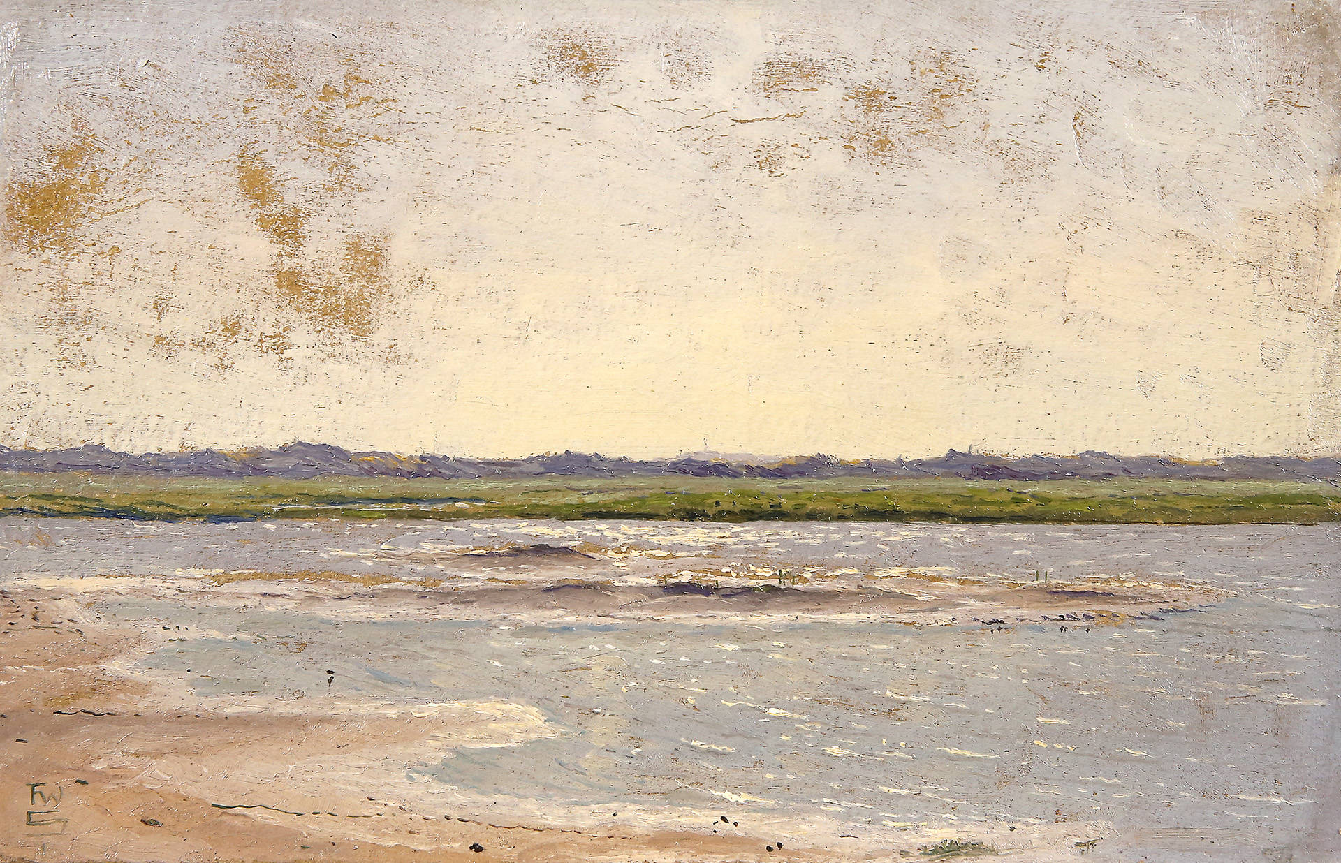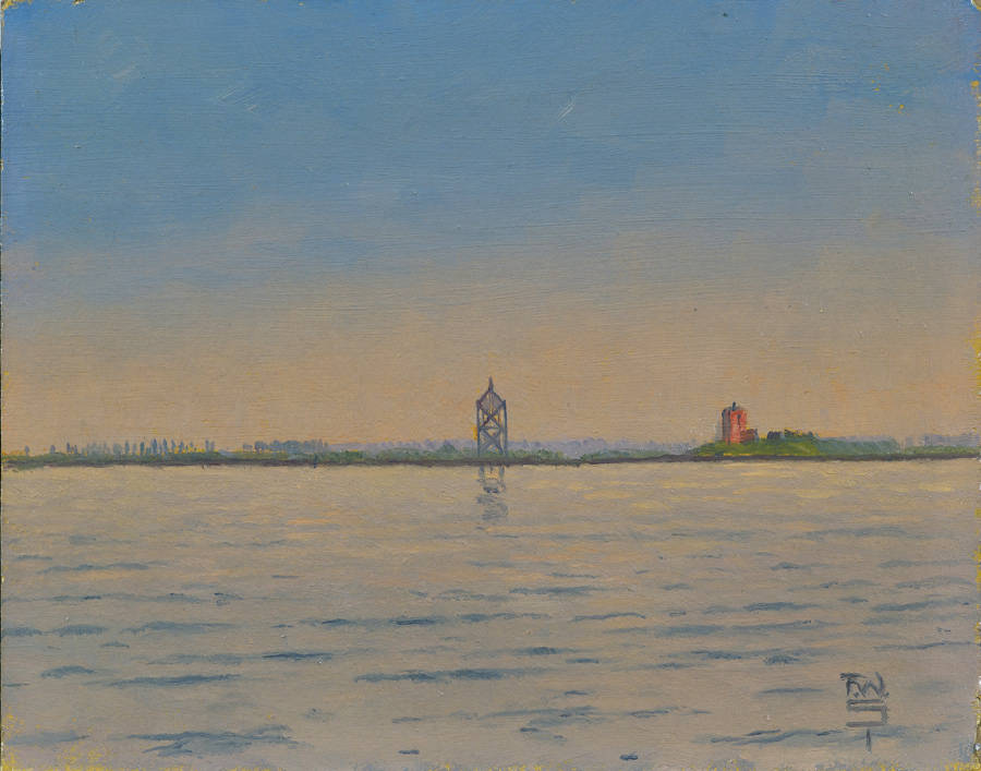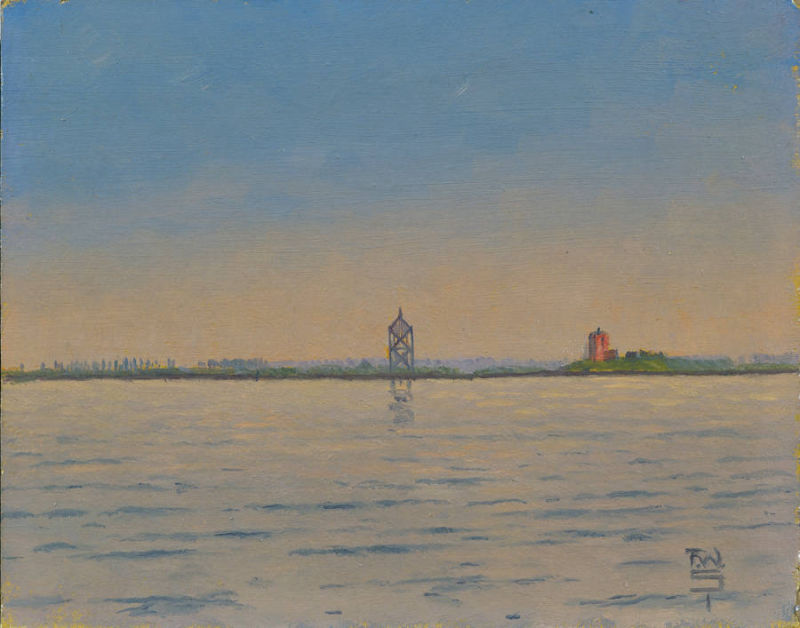 469 Öl auf Pappe, 21 x 16 cm, "Sonniger Blick auf die Elbe - Cuxhaven 1950"