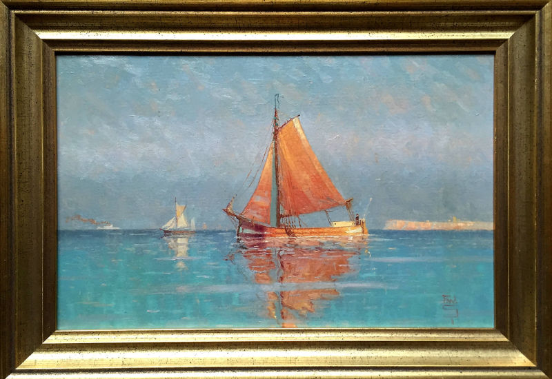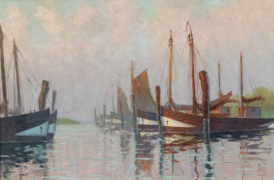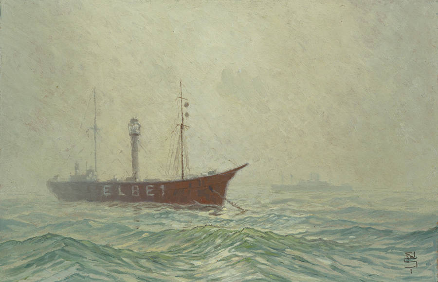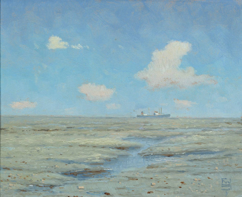 065 Öl auf Hartfaser, 40 x 30 cm "In Flaute vor der Weser"