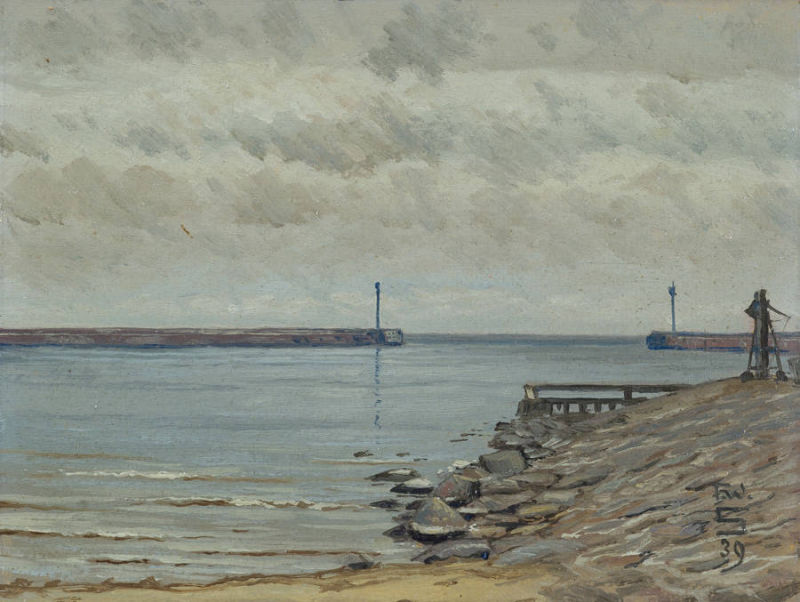 020 Öl auf Hartfaser, 28 x 20 cm, 1935, "Kieler Ufer a/Rügen"