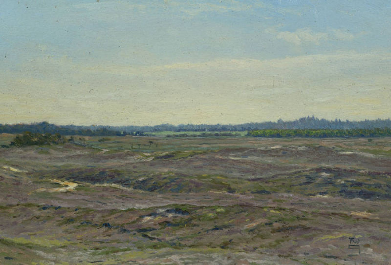 050 Öl auf Hartfaser, 25 x 17 cm, "Heide bei Oksböl"