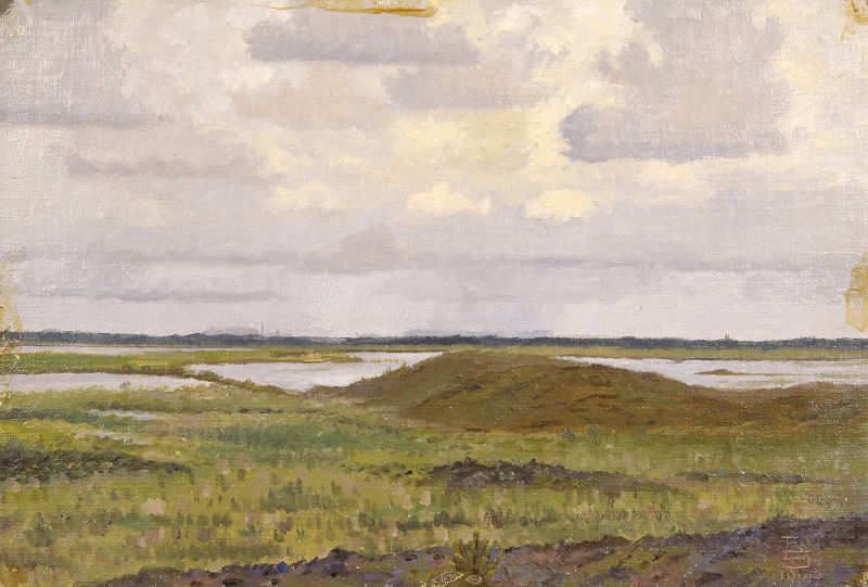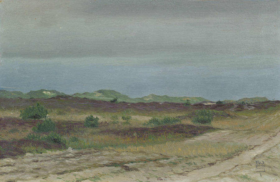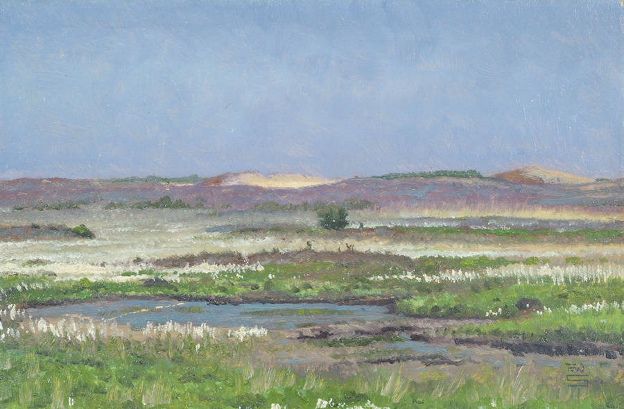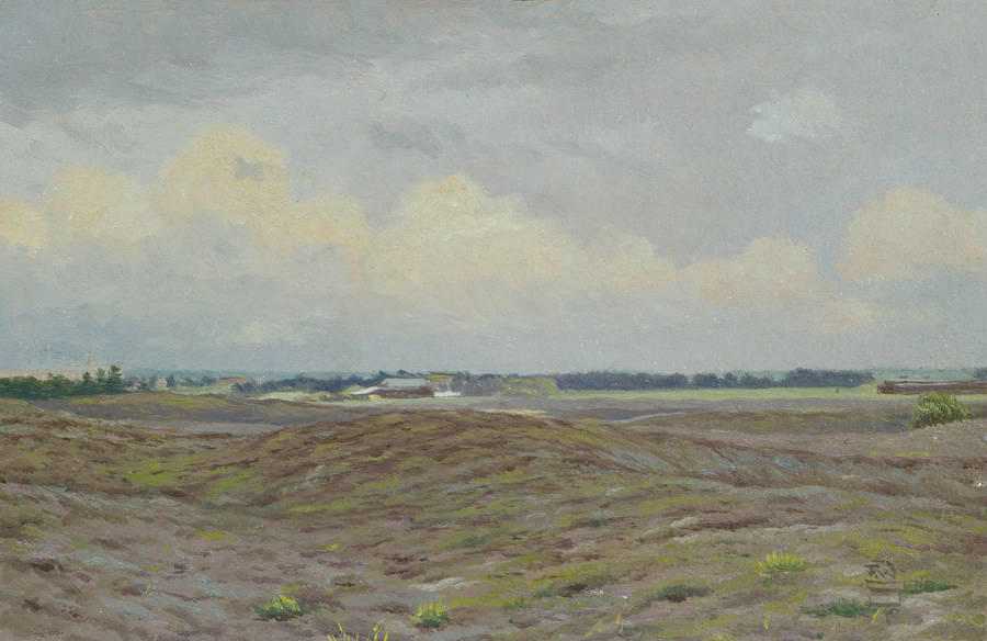 051 Öl auf Hartfaser, 26 x 17 cm, Heide v. Oksböl - erste damalige Studie"