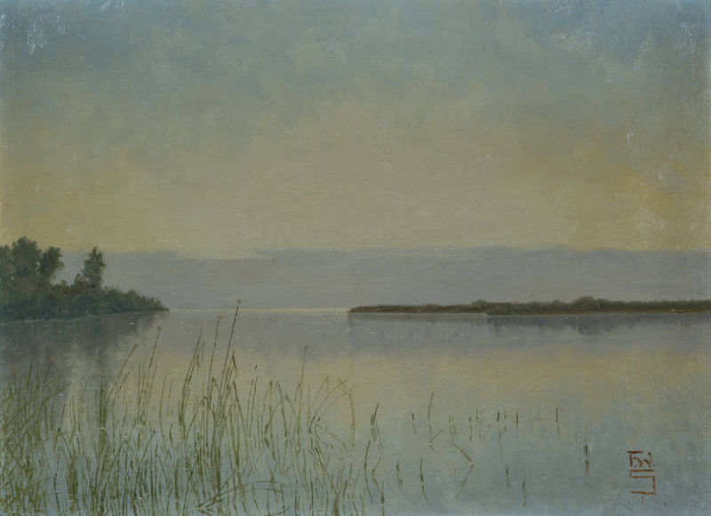 064 Öl auf Hartfaser, 40 x 29 cm, 16.12.1954, "Abend am See"