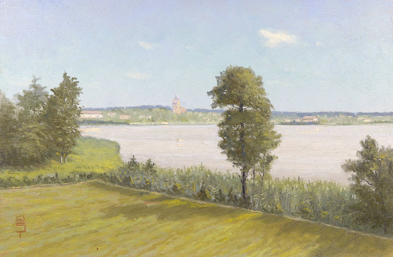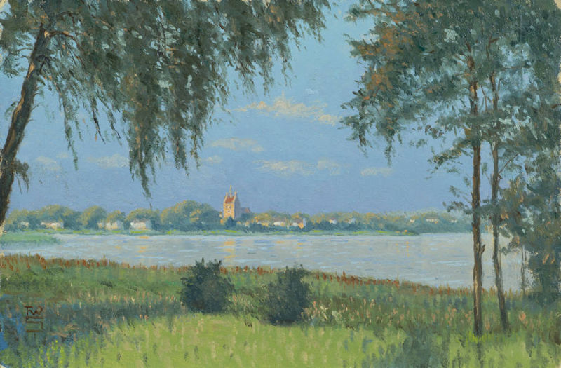 049 Öl auf Hartfaser, 29 x 21 cm, 1947, "Am Schafsee bei Oksböl"
