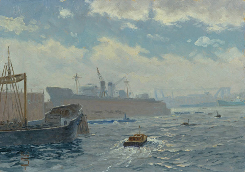 027 Öl auf Karton, 21 x 19 cm, 1950 "Cuxhaven 1950"