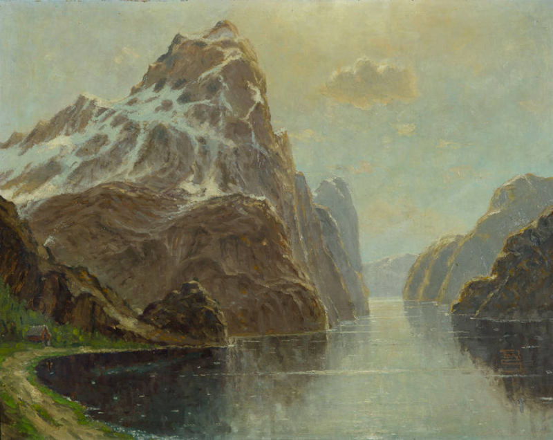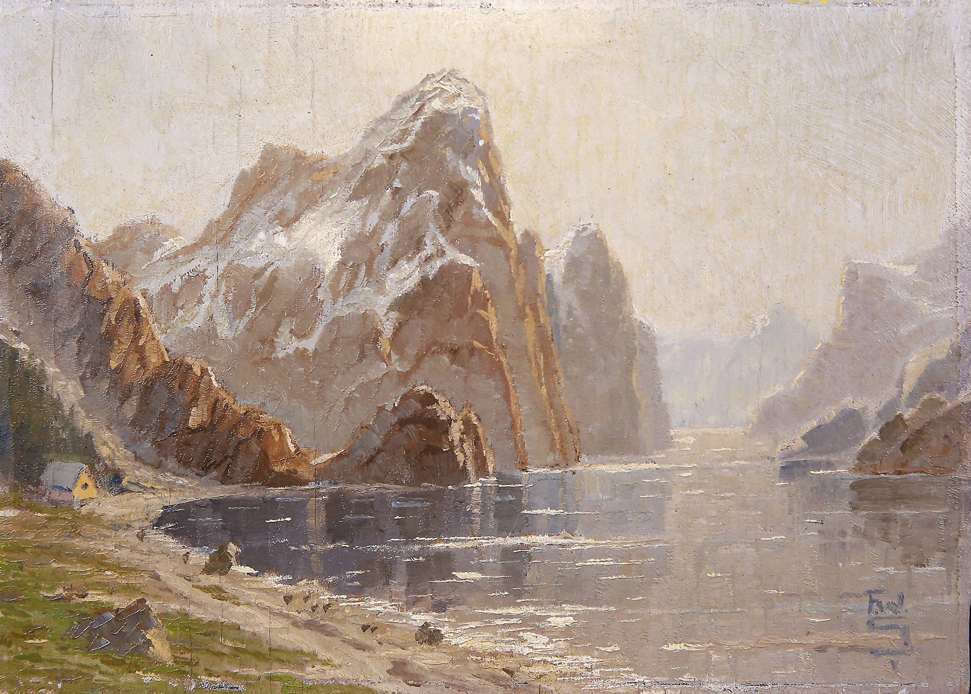 003 Öl auf Hartfaser, 20 x 13 cm "Aus Norwegen Sognefjord"
