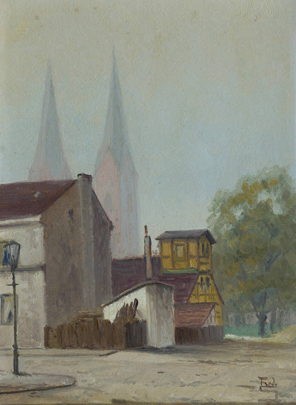 126 Öl auf Hartfaser, 28 x 25 cm, 1944, "Danzig 1944"