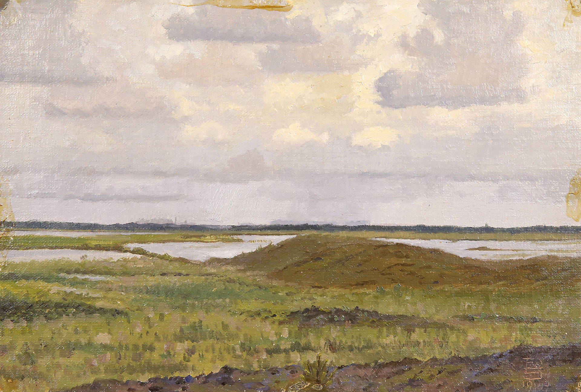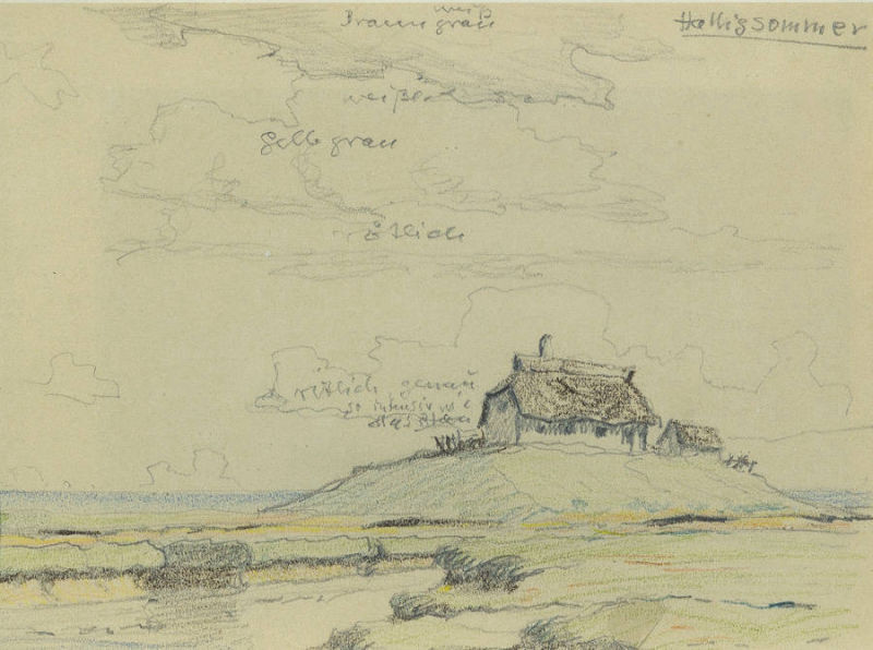 423 Öl auf Leinen, auf Pappe geleimt, 20 x 14 cm, "Studie nach Bleistiftskizze in Oksböl"
