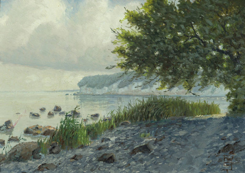 080 Öl auf Hartfaser, 21 x 14,5 cm, "Sommerabend beim Königsstuhl (Rügen)"