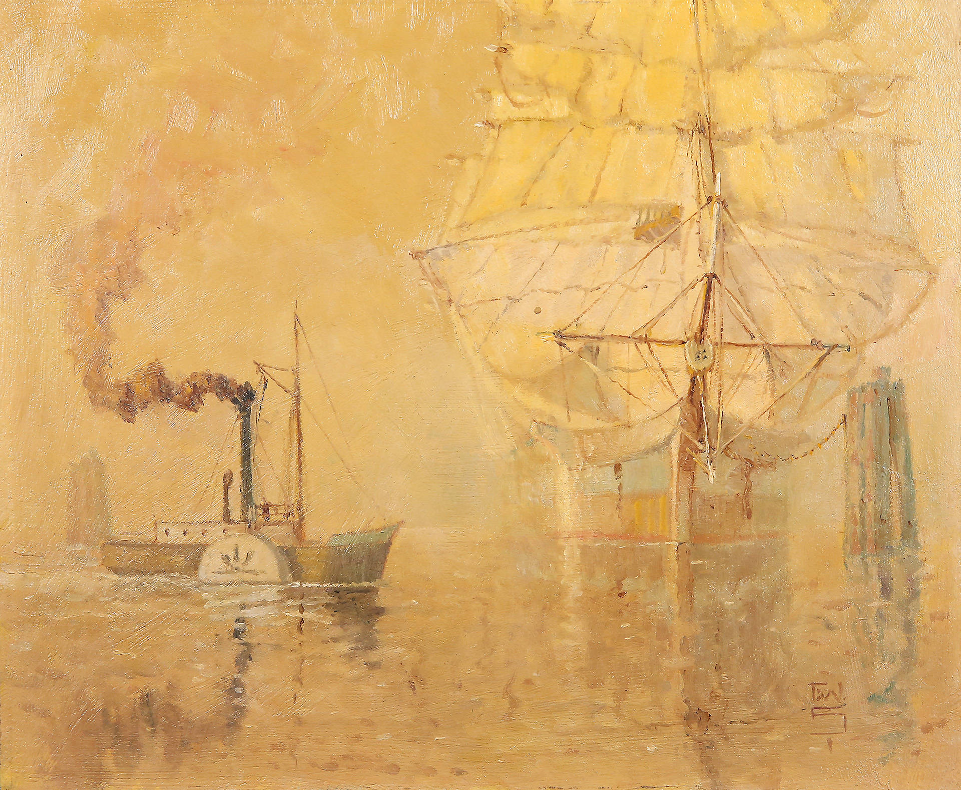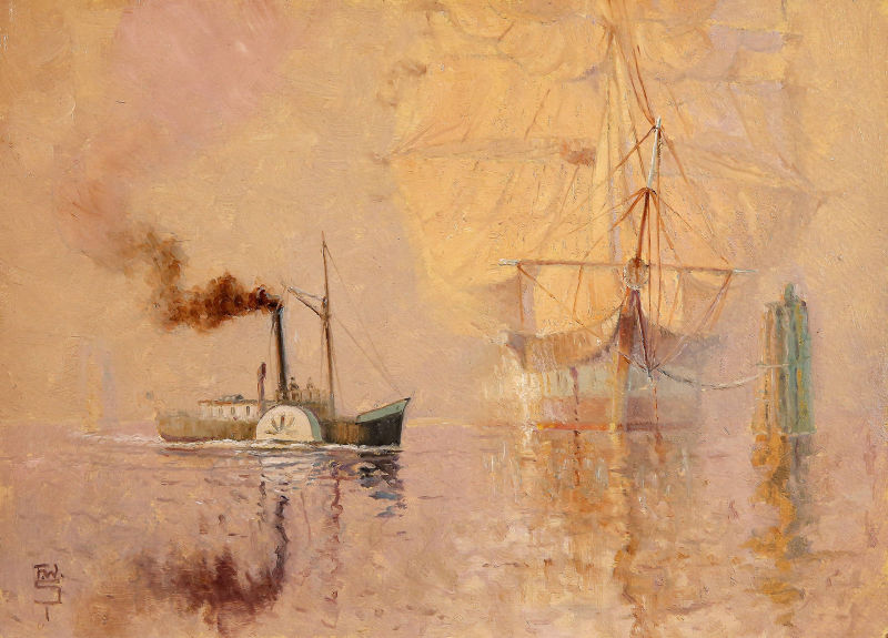 412 Öl auf Hartfaser, 32 x 22 cm, "Auf der Themse (Anno 1860)"