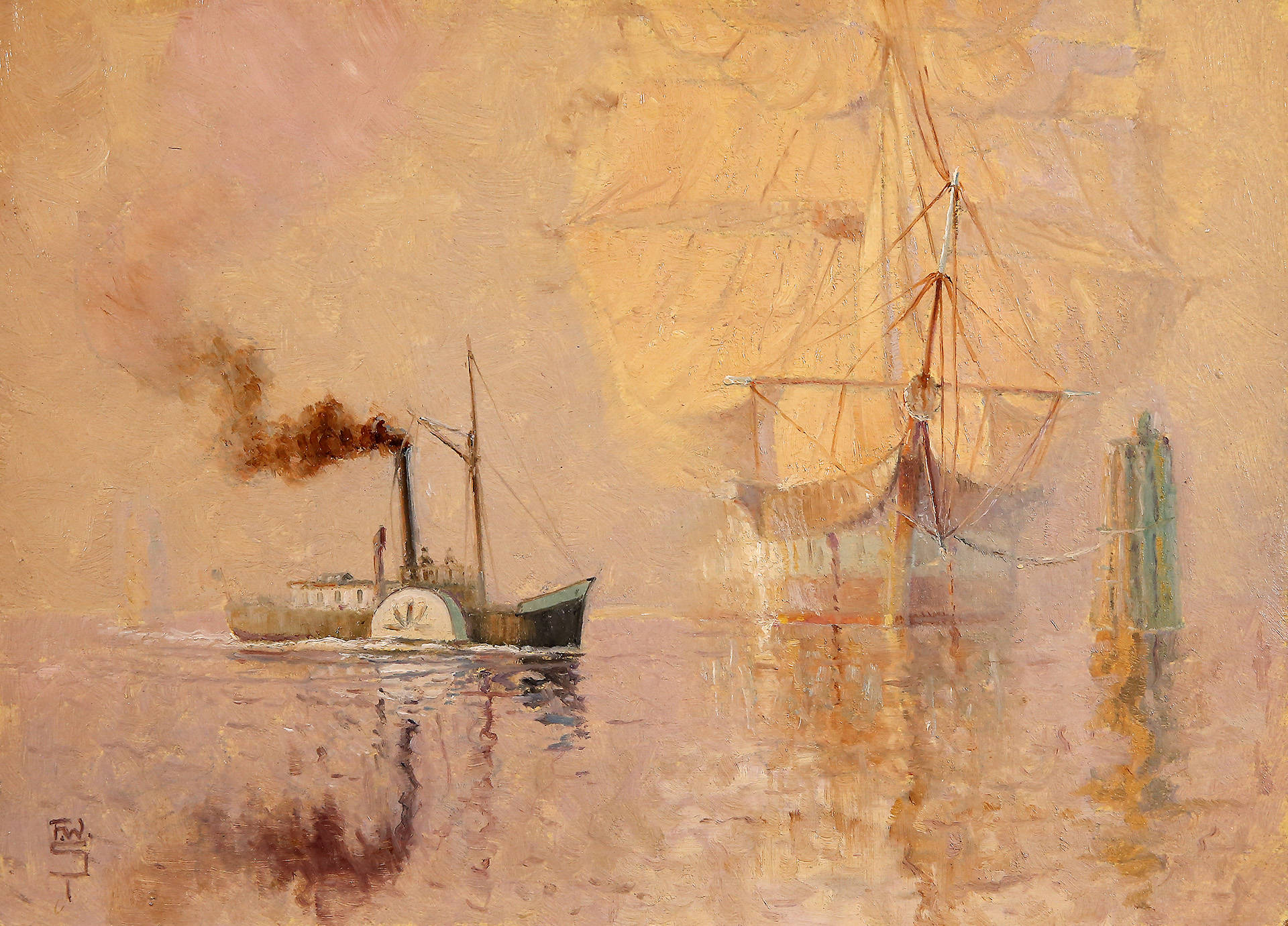069 Öl auf Hartfaser, 17,5 x 14,5 cm "Begegnung a. d. Weser "Bremen""