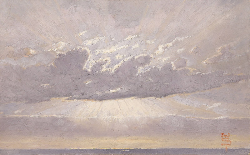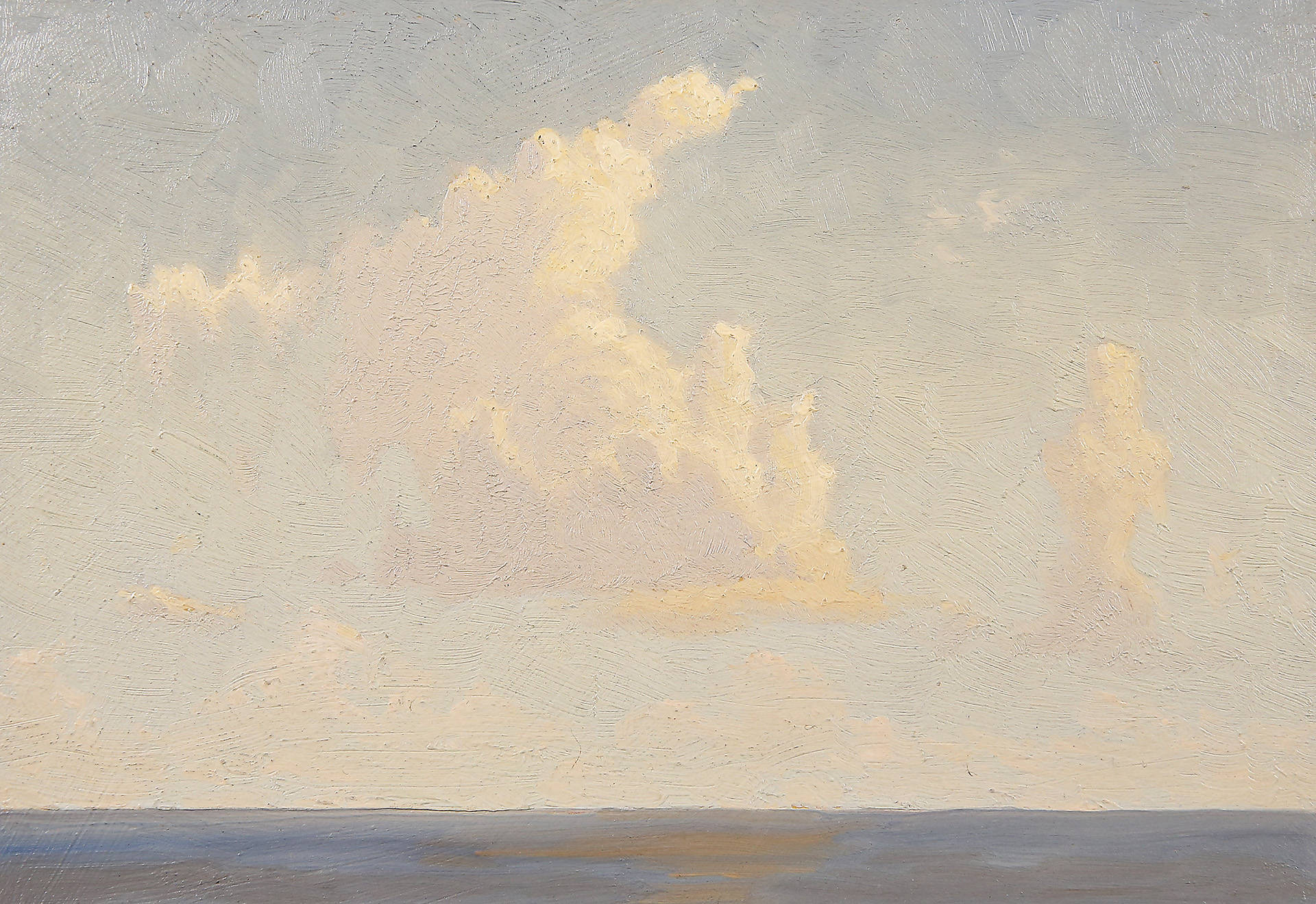 467 Öl auf Pappe, 21 x 15 cm, "Die kleine Wolke zerfelddert nachher"