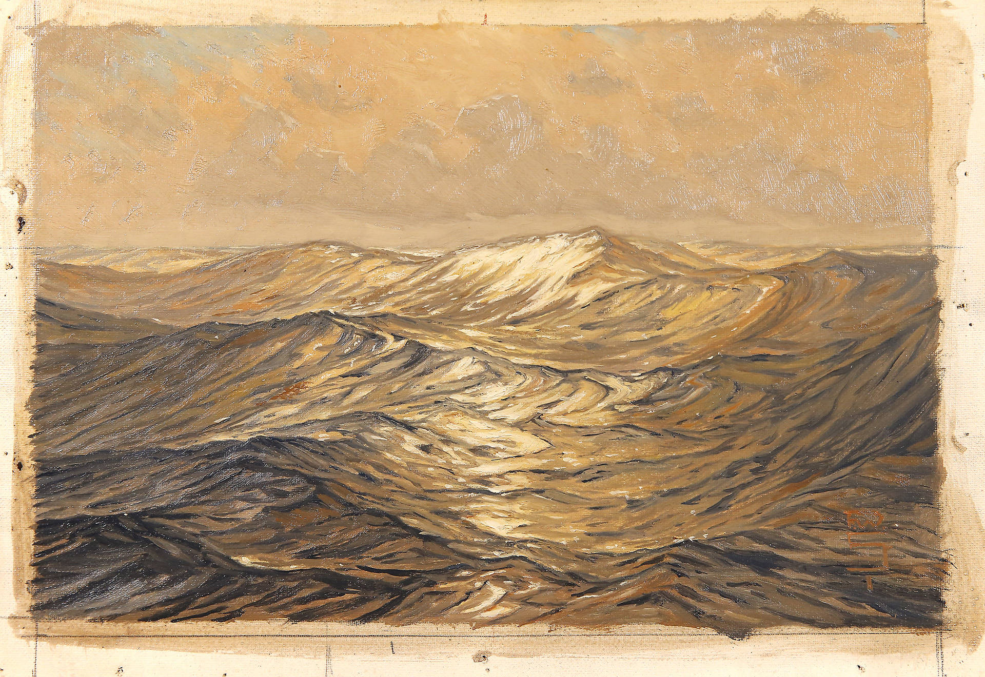 071 Öl auf Hartfaser, 20 x 15 cm, 15.05.1957 "Im Wolkenschatten"