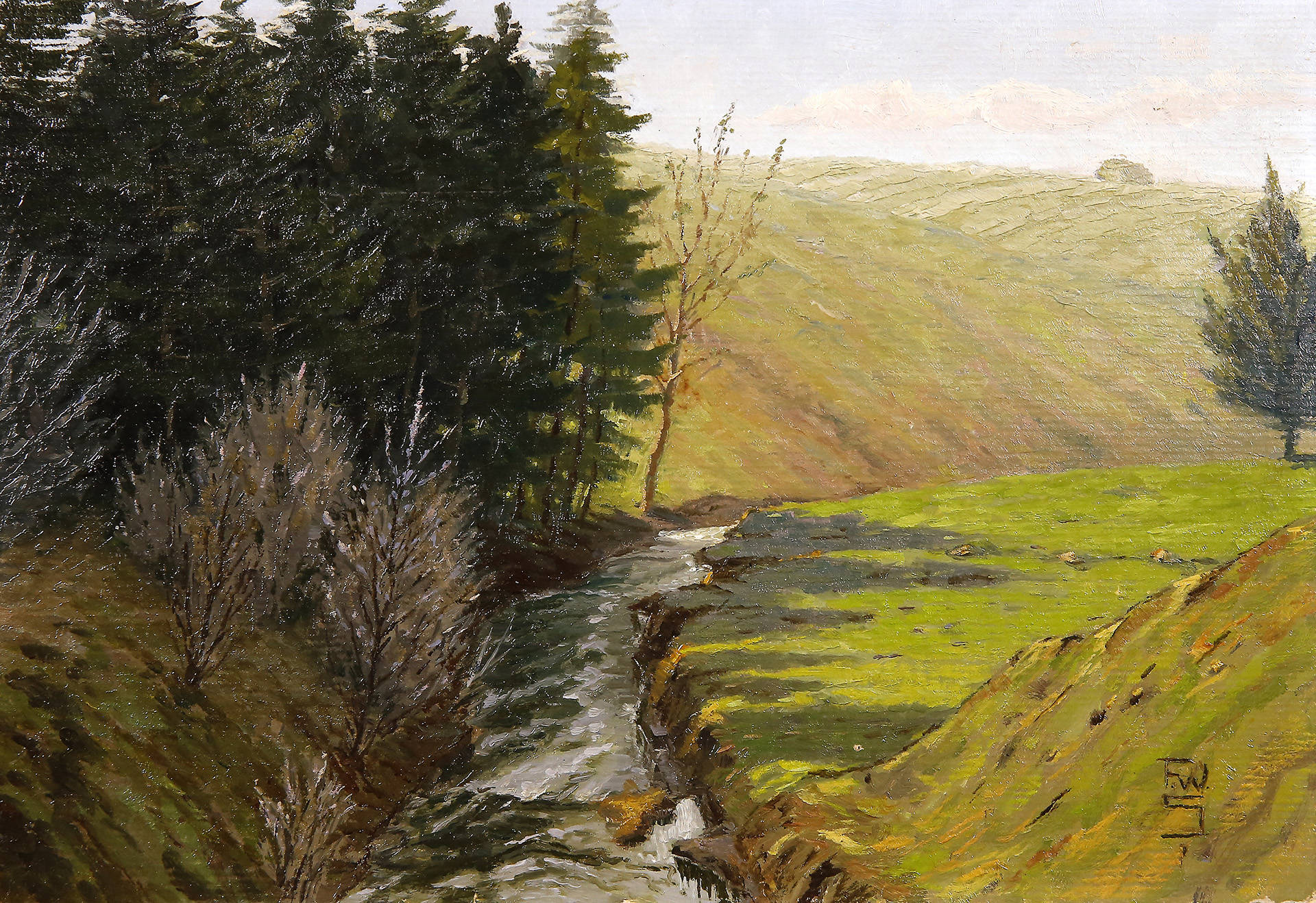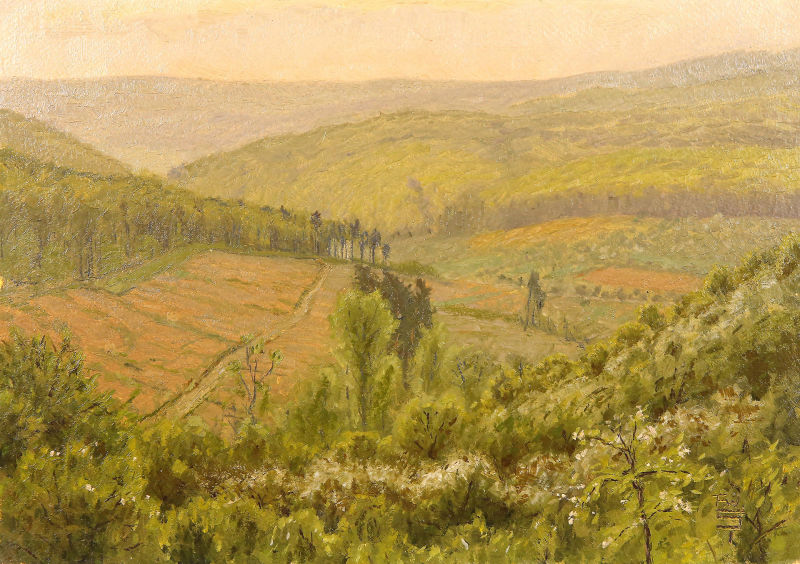 086 Öl auf Hartfaser, 20 x 14,5 cm1935, "südlich vom Kieler Bach"