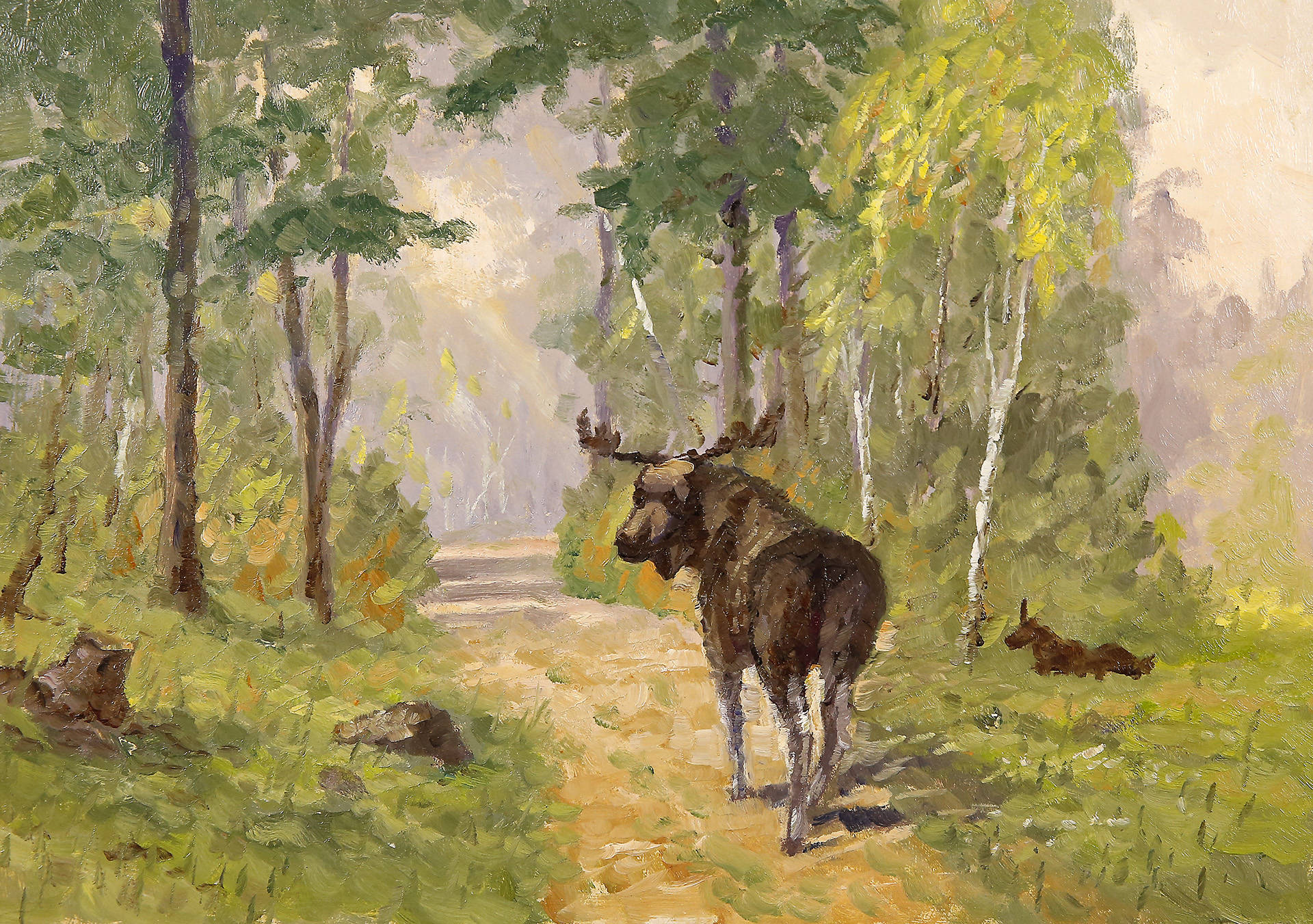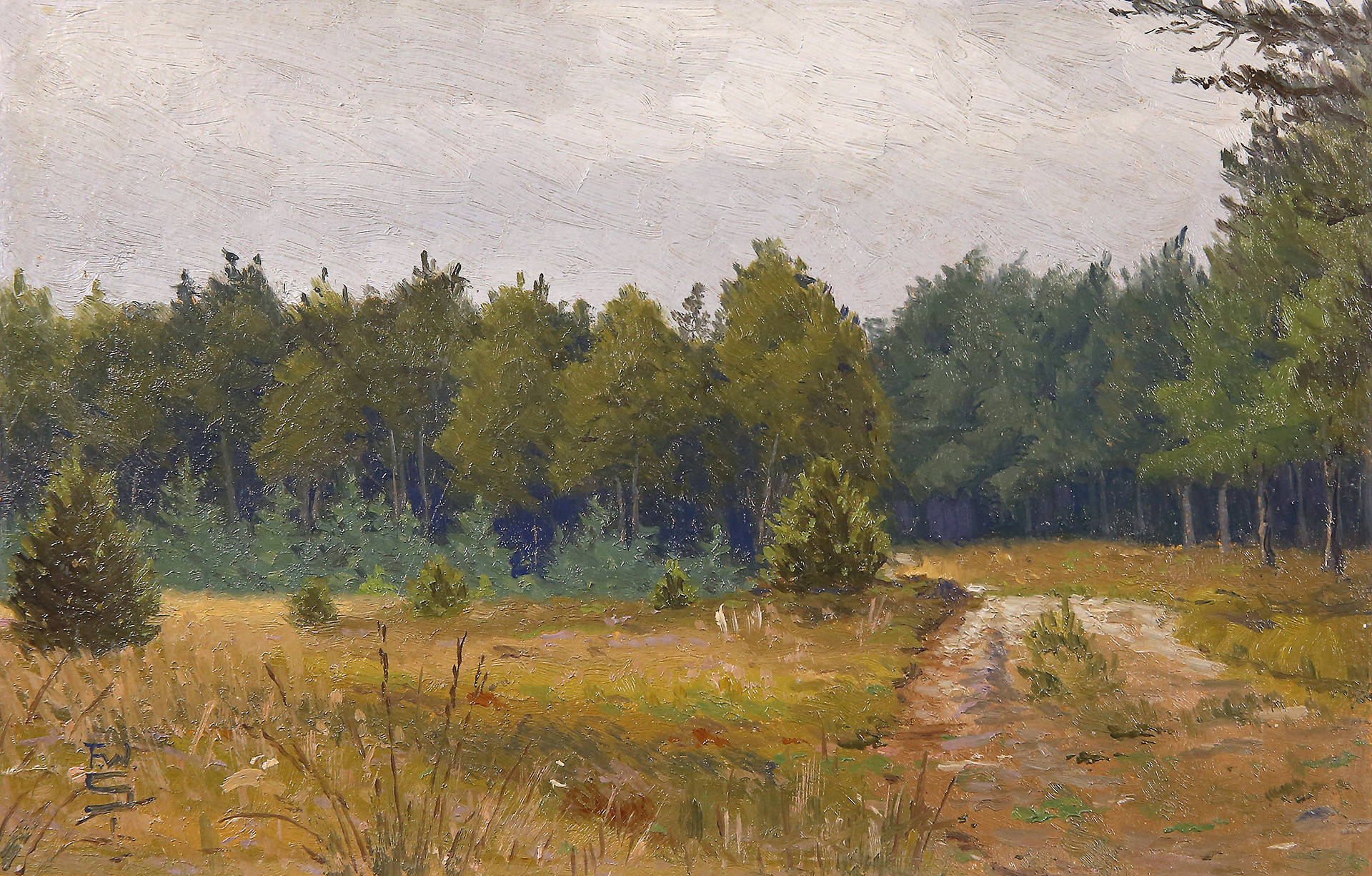 454 Öl aufPappe, 23 x 16 cm, "Waldweg in Südjütland"