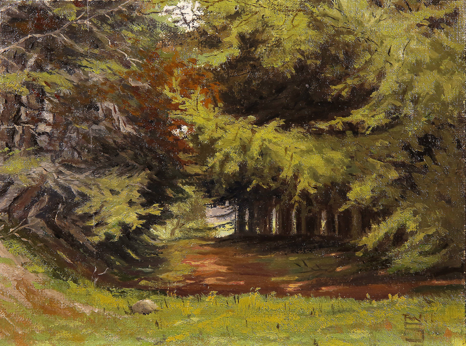 455 Öl auf Pappe, 18 x 24 cm,"Wald bei Oksböl"