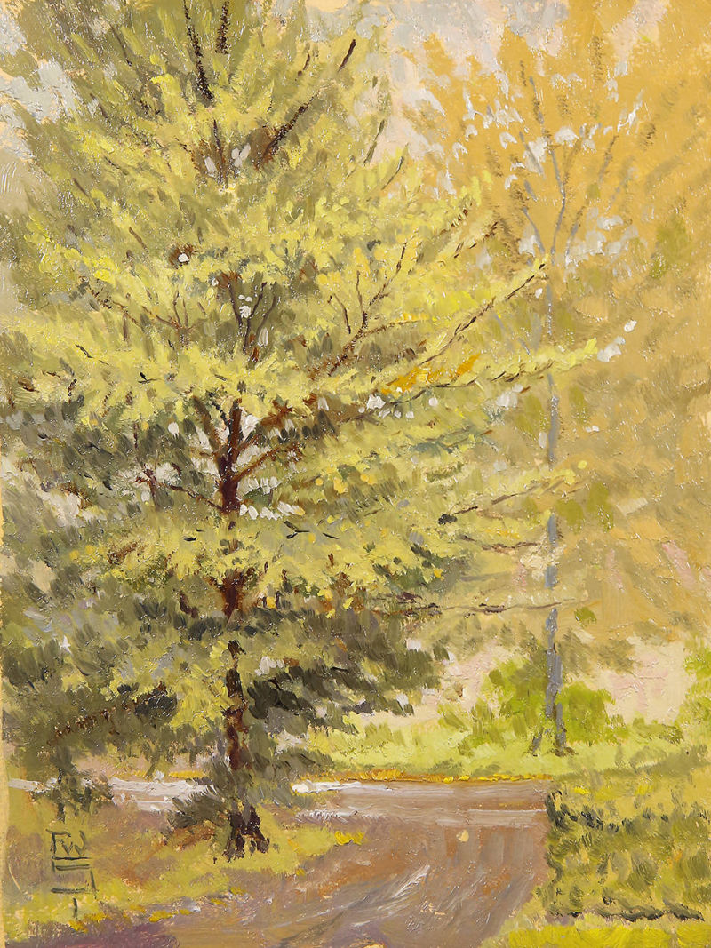 456 Öl auf Pappe, 20 x 15 cm,06.06.1957 "Waldweg"