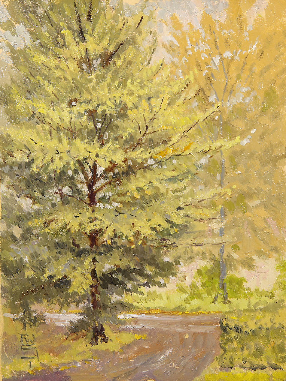 416 Öl auf Hartfaser, 23 x 17 cm, "Durch wreckendes Licht"